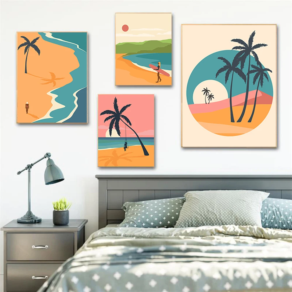 Модная Летняя женская Настенная картина в стиле бохо, Пляжная Карти...
