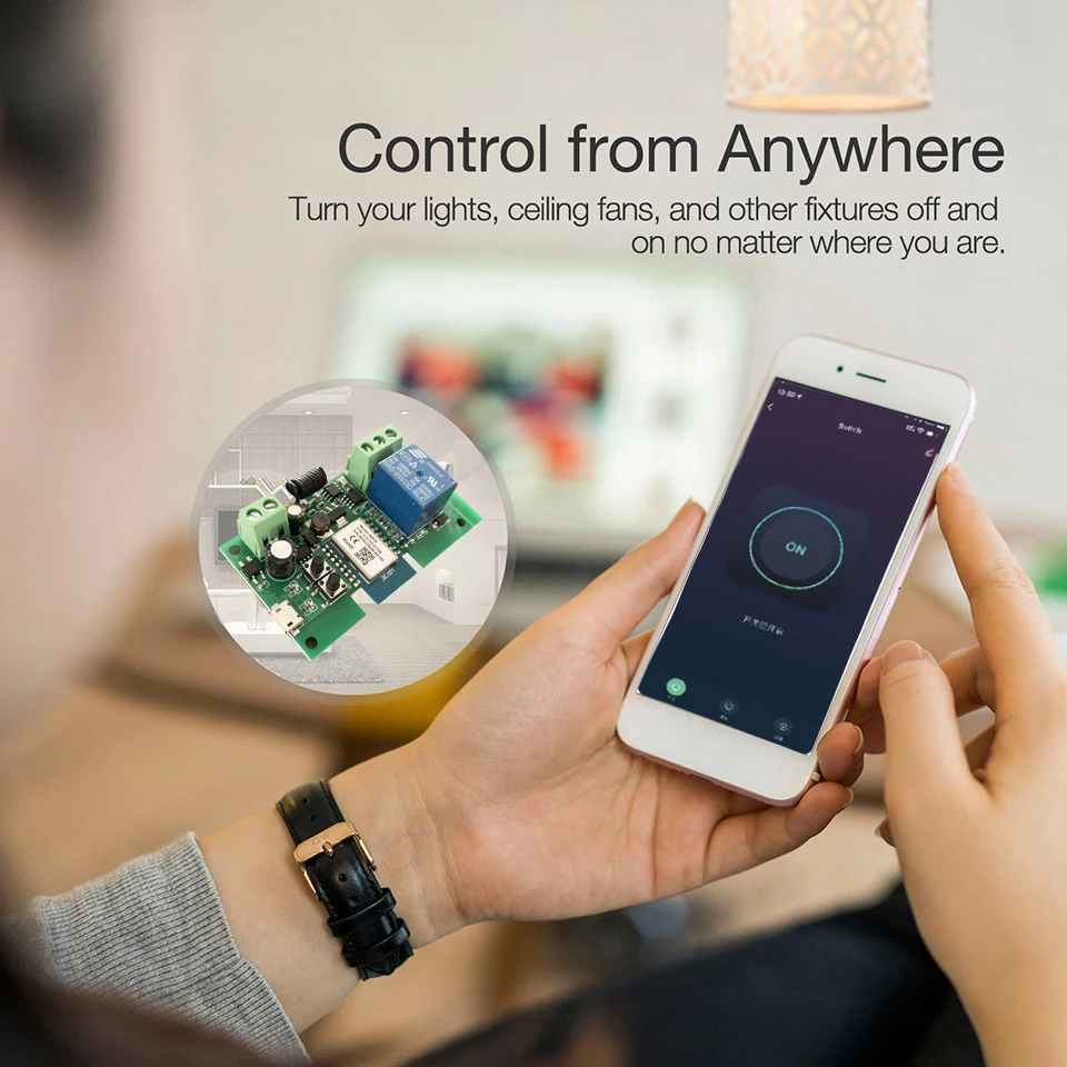 * Этот продукт является беспроводным переключателем, поддерживающим режим инширования/самоблокирования.* Пользователи могут добавить устройство в приложение Smart life для удаленного управления подключенными бытовыми приборами или устройствами.* В режиме самоблокировки клиенты могут удаленно включать/выключать подключенные устройства немедленно.* В режиме инчинга клиенты могут выбрать два способа подключения, и вы можете установить время инчинга в приложении.* Модель управления WIFi, не нужно программировать. Независимо от того, где вы находитесь, вам нужно только загрузить приложение для подключения wifi и управления облаком.* Режим RF, вы можете управлять доской с пультом дистанционного управления RF433.
