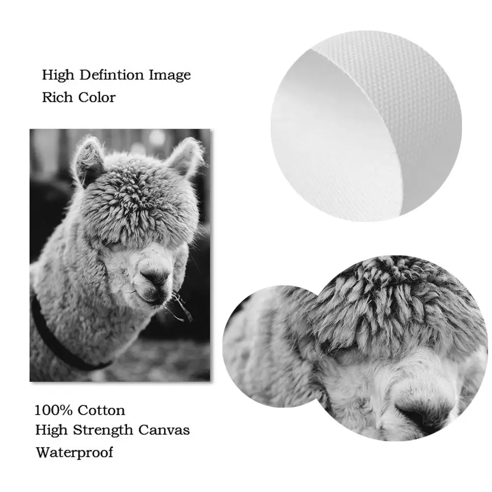 Черно-белый постер альпака, животные, лама, холст, печать, Современ...