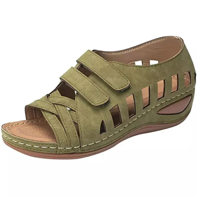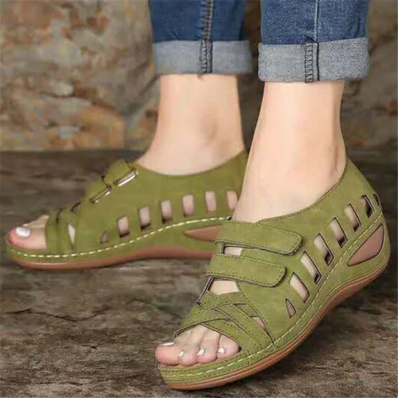 Сандалии женские на танкетке, повседневная нескользящая Мягкая пляжная обувь, с перфорацией, на платформе, с пряжкой, лето 2021