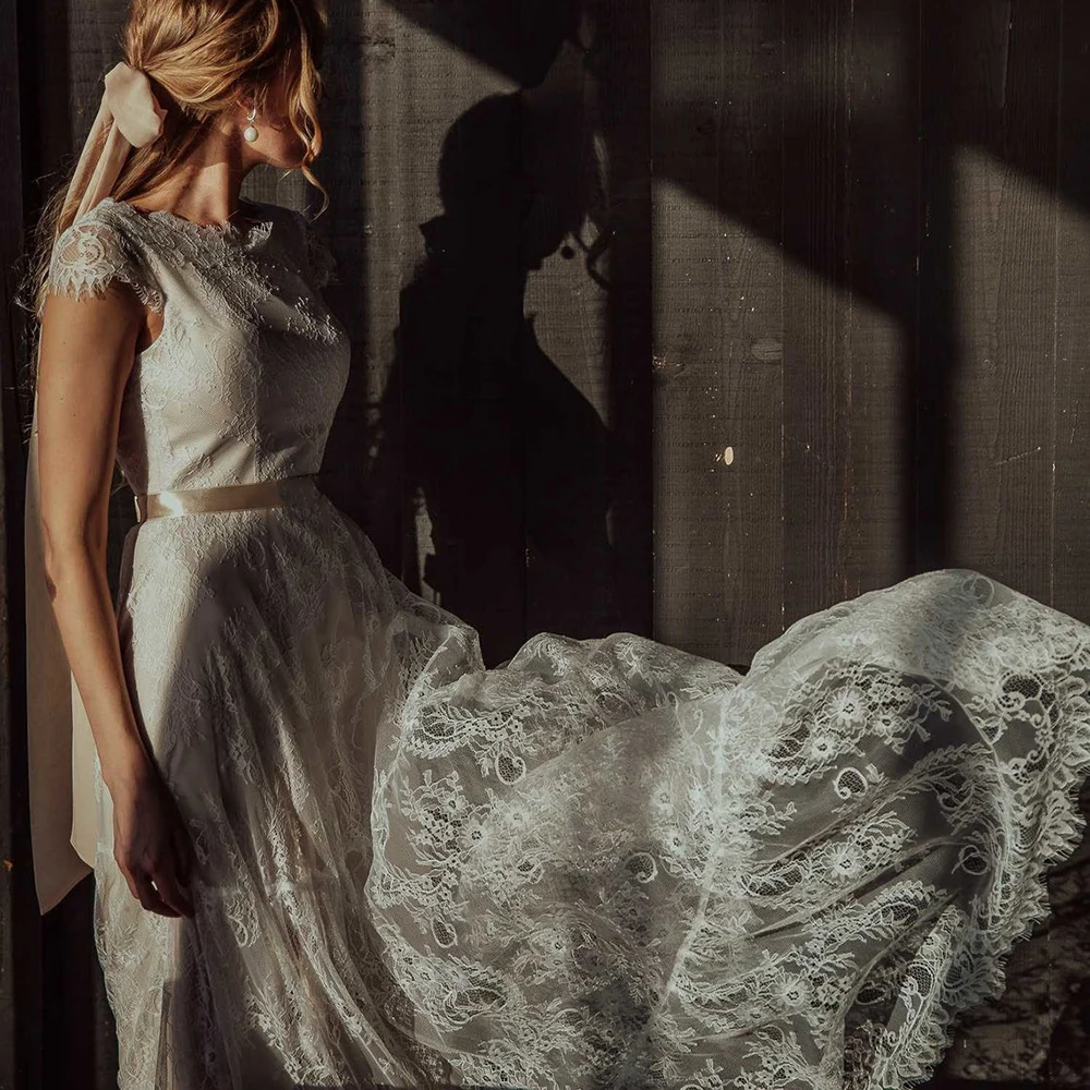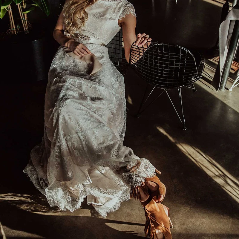 Многоярусное кружевное пляжное свадебное платье в стиле бохо 2021, романтичное ТРАПЕЦИЕВИДНОЕ платье с открытой спиной и рукавами-крылышками по индивидуальному заказу, садовое свадебное платье макси, большие размеры