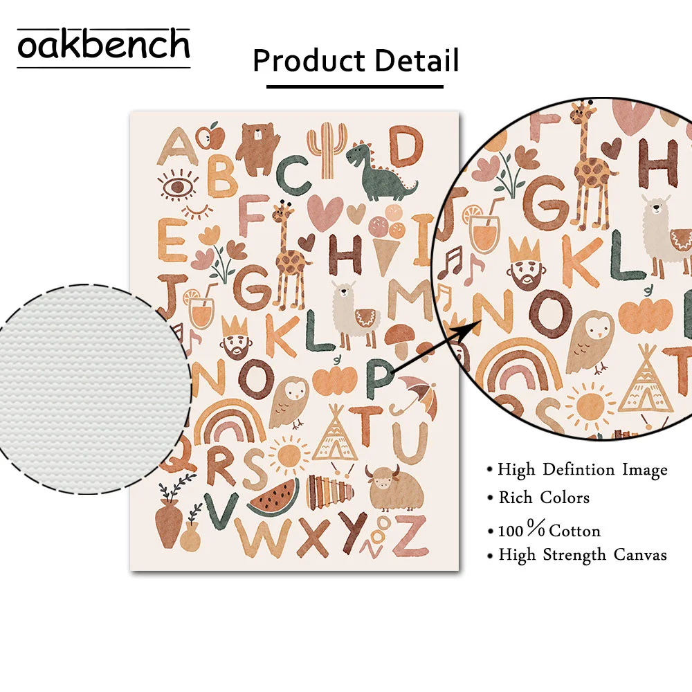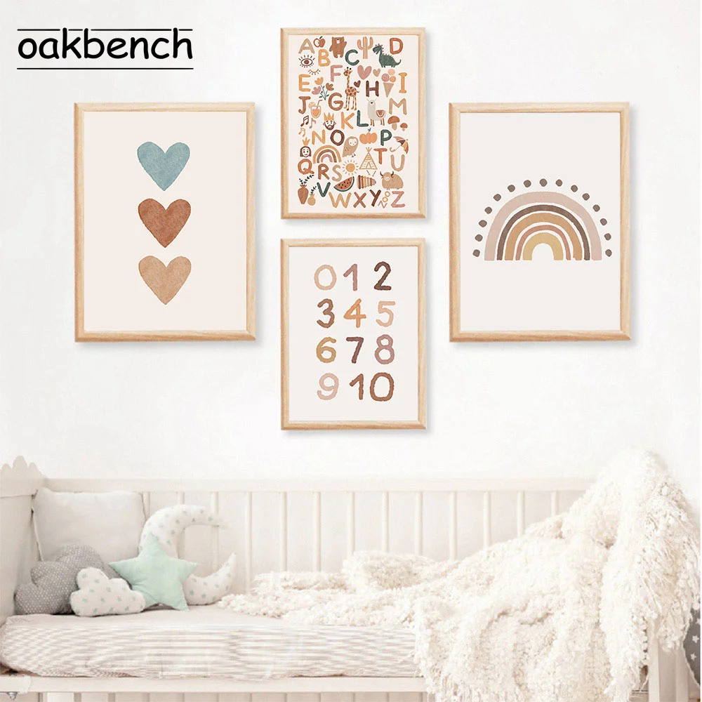 Картина на холсте с алфавитом, радуга, любовь, художественный постер в стиле бохо, Детские постеры, картины для детской комнаты, современные настенные картины, декор для детской комнаты