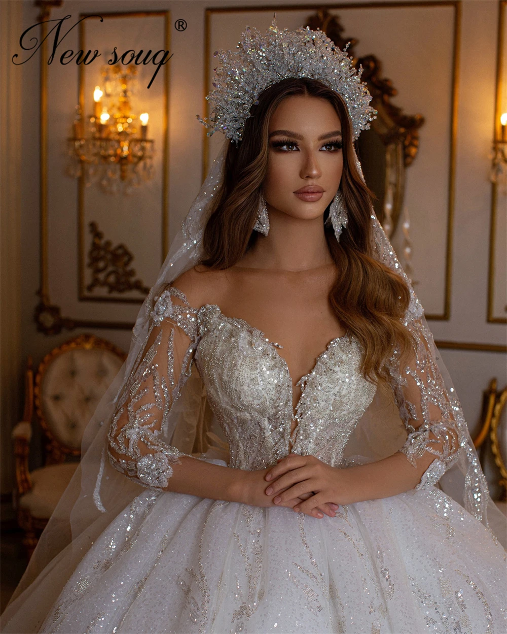 Пышные свадебные платья принцессы с бисером, свадебное платье, свадебные платья с открытыми плечами, арабское платье для невесты Дубая, 2021