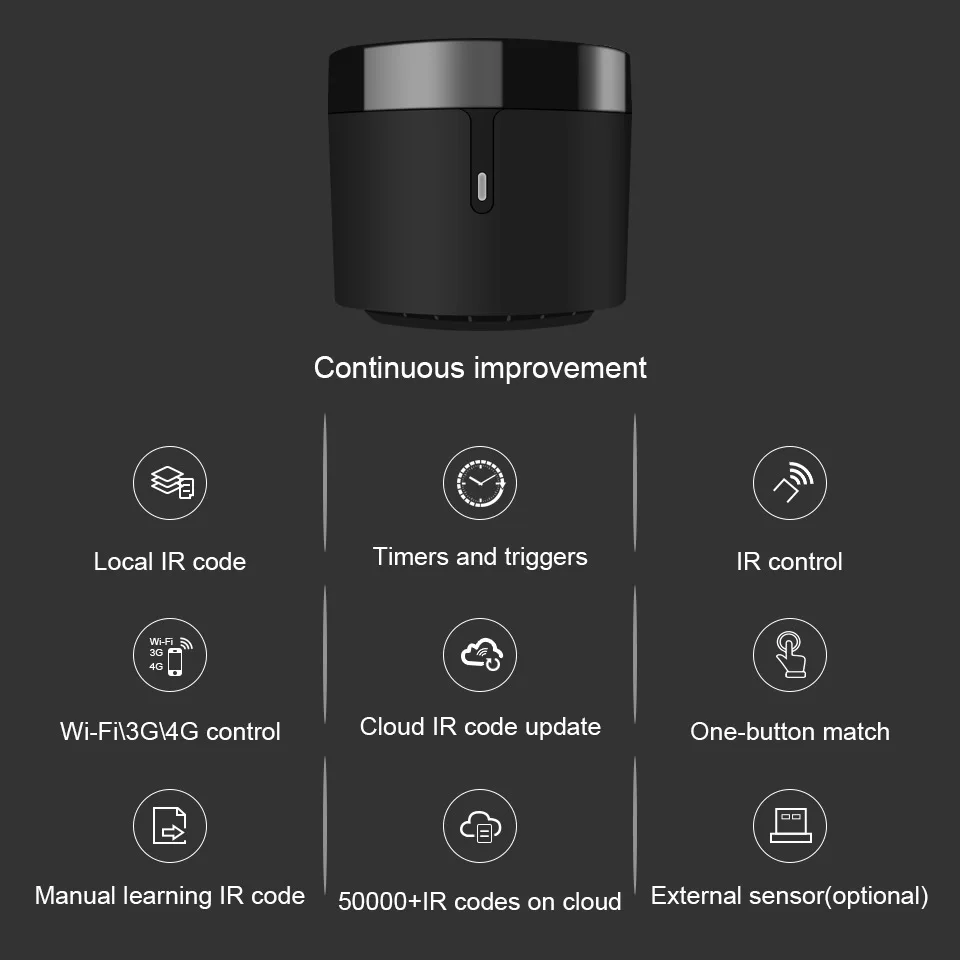 RM4 Mini-это настоящий универсальный пульт дистанционного управления со следующими функциями:1. Поддержка всех ИК-устройств, таких как телевизор, кондиционер, DVD и т. Д.2. Поддержка ИК-частот.3. Поддержка Wi-Fi 2,4 ГГц b/g/n4. Поддержка приложений для Android и IOS для управления вашим телевизором с помощью смартфона через Интернет5. Вы можете установить время загрузки телевизора/кондиционера/DVD заранее6. Поддержка авто режимов, авто дома и авто7 Простая настройка: один шаг подключение к вашему дому или офису Wi-Fi, нет необходимости в шлюзе8 профилей: превратите ваш смартфон iOS или Android в универсальный пульт дистанционного управления9 умное управление: используя приложение Broadlink, вы можете управлять устройствами в любом месте, в любое время10. Планирование: предварительно Установите свои собственные профили, автоматически работайте в установленное время