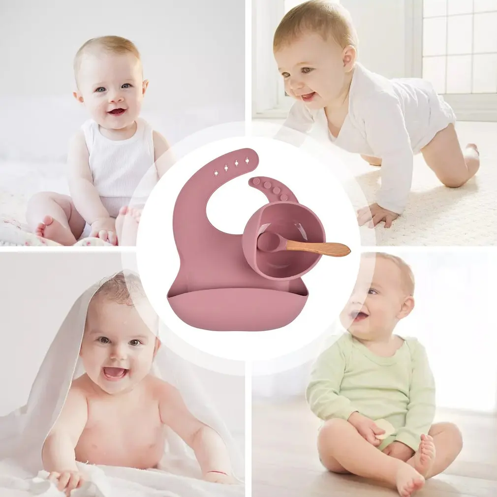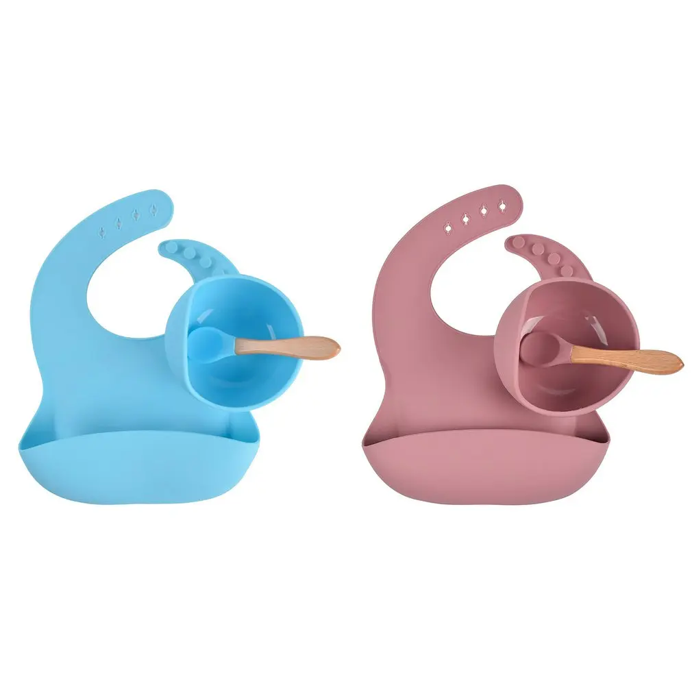 3 шт.компл. детская силиконовая обеденная тарелка, миска, набор дополнительной пищи, силиконовая миска + нагрудник + ложка, детская посуда