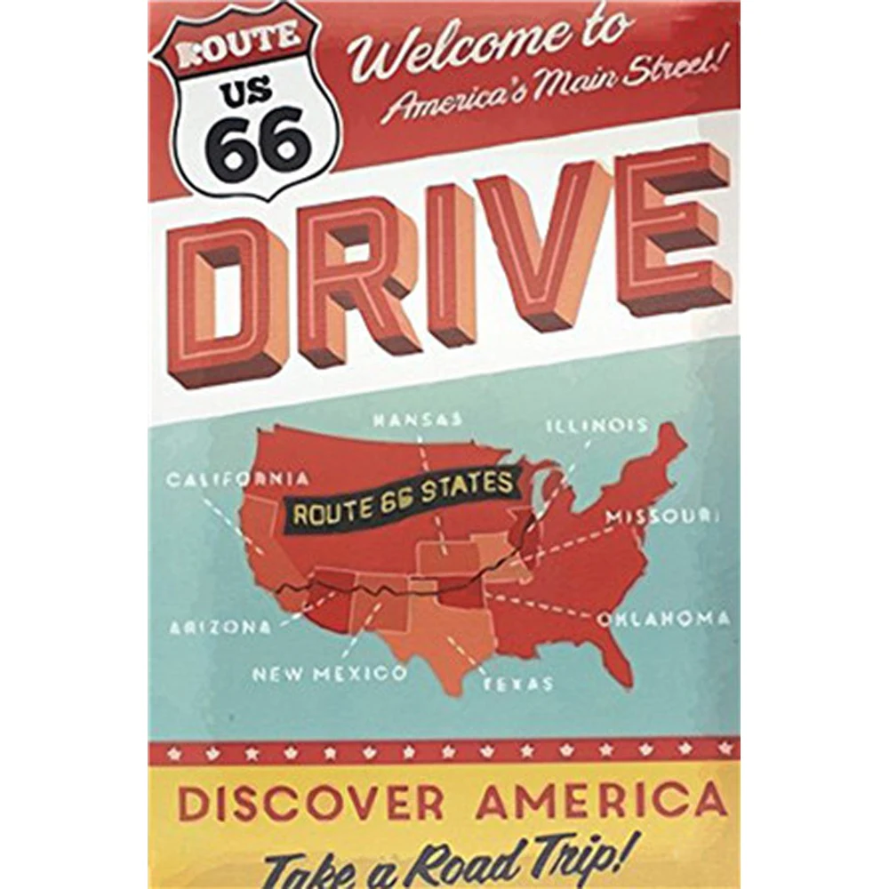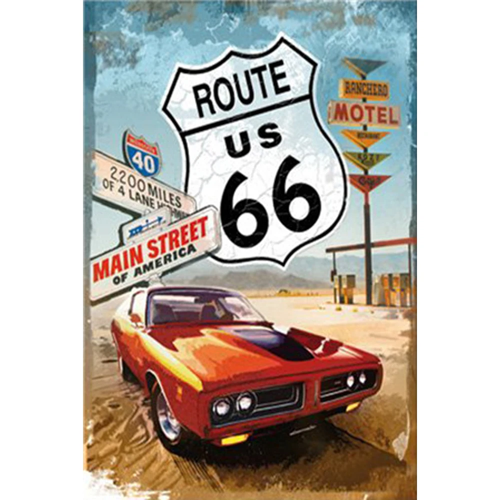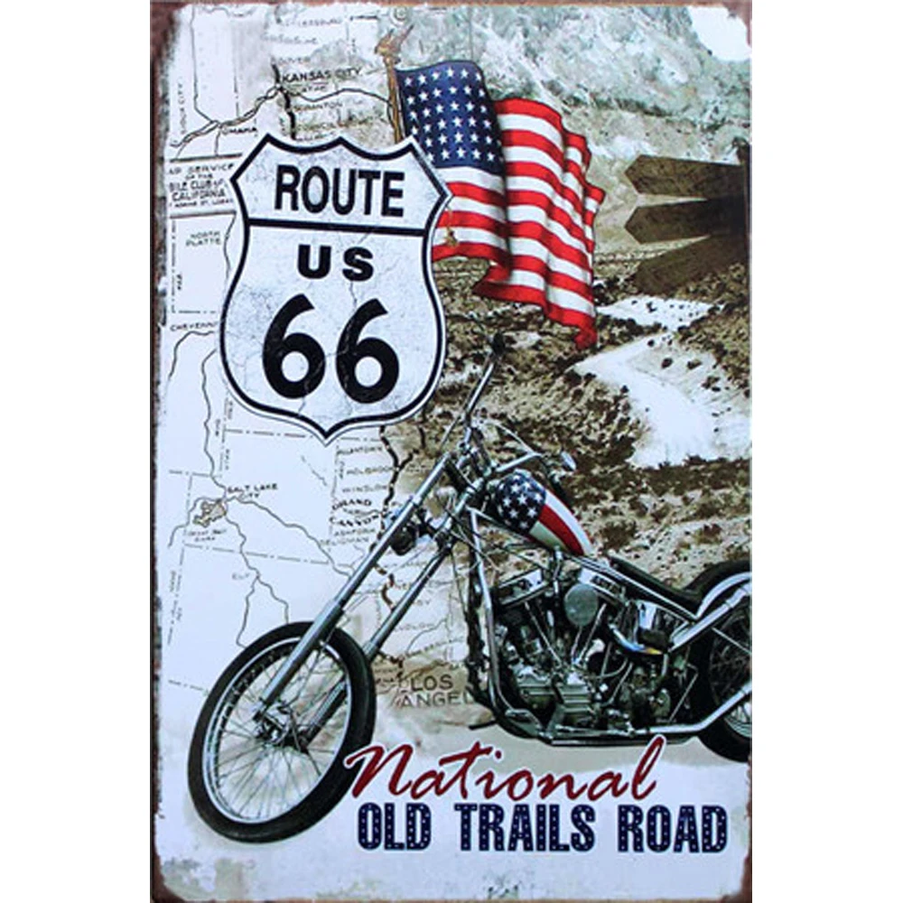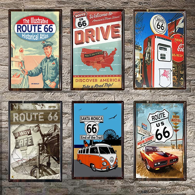 Жестяная вывеска Route 66, металлические пластины, табличка, ретро,...