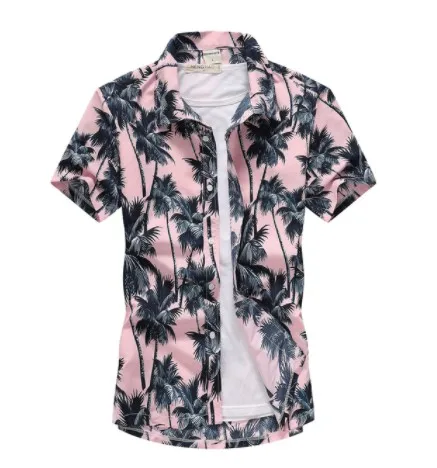 Рубашка мужская с принтом пальмы, розовая гавайская рубашка с корот...