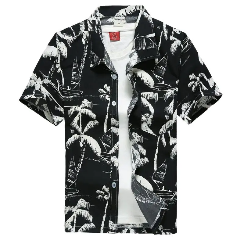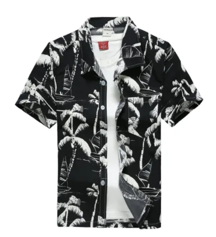 Мужская гавайская рубашка, черная Повседневная быстросохнущая пляжная рубашка с принтом пальмовых деревьев и тропических алохи, 2021