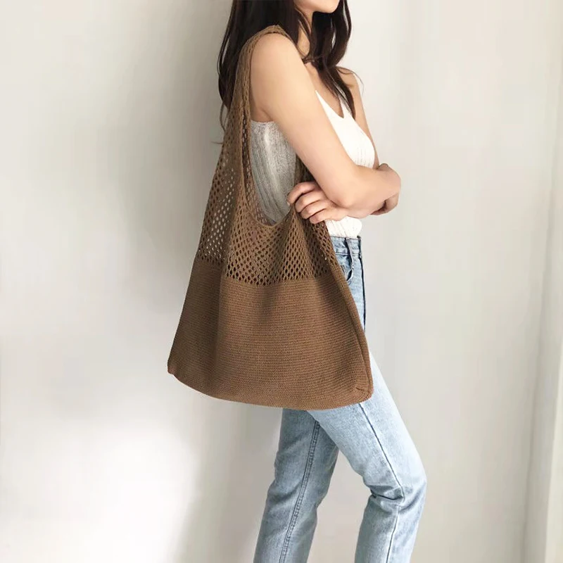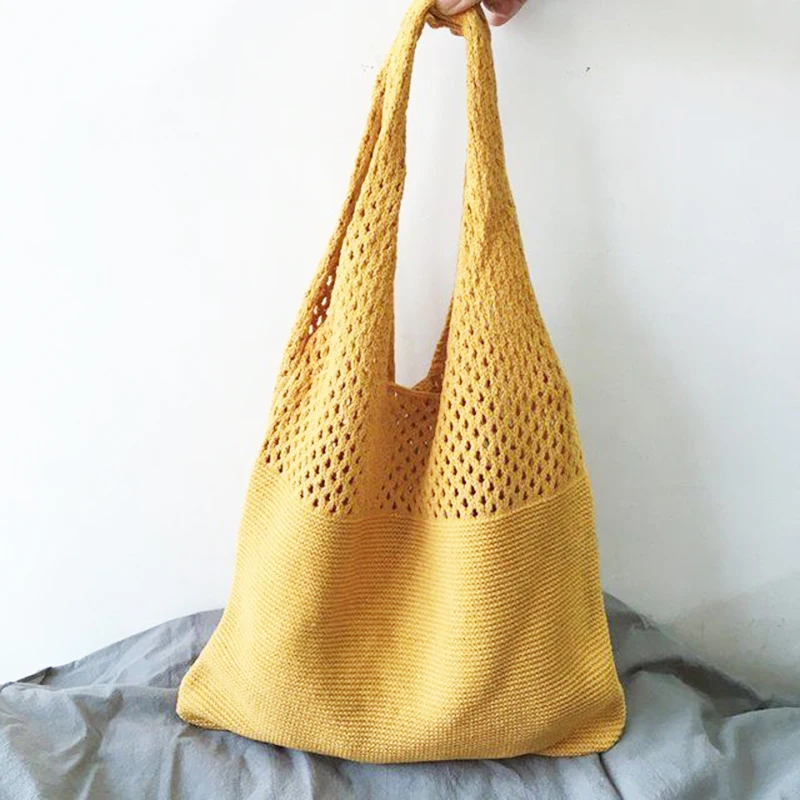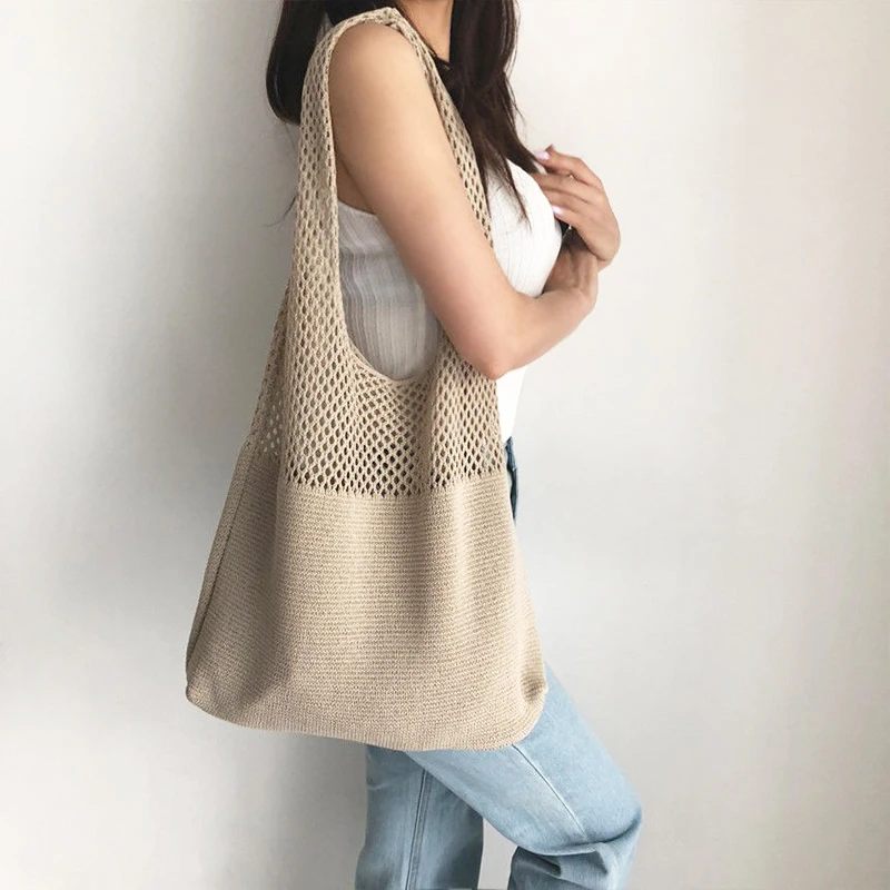 Повседневная вязаная женская сумка на плечо, плетеная сумочка большой вместимости, летняя пляжная сумка, кошелек, сумка для покупок