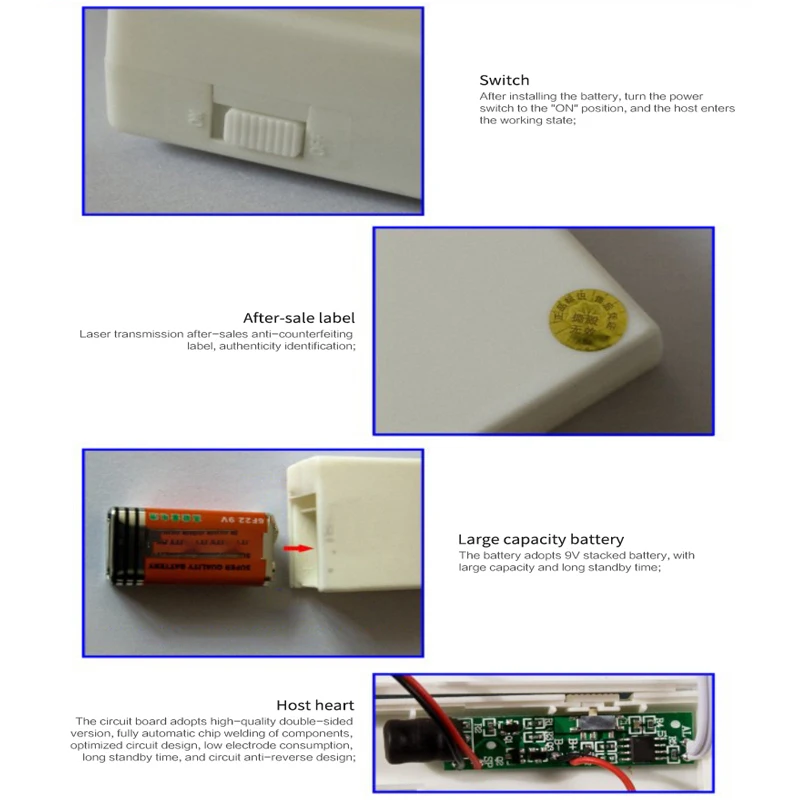 Нет кнопок, нет программирования, просто поместите его там, где вы хотите проверить утечку воды;