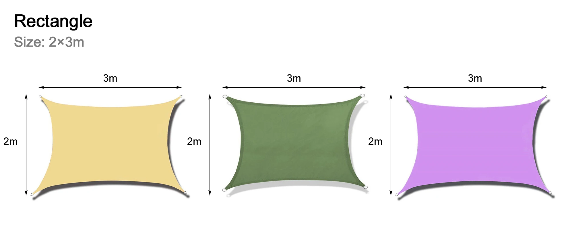 Параметры продукта: Тип: Солнцезащитный парус Материал: полиэфирная ткань Особенности: растушевка, защита от УФ-лучей, водонепроницаемость Форма: прямоугольник, треугольник Цвета: хаки/зеленый/фиолетовыйДля паруса прямоугольник Тень: 2x3 м Для треугольной тени паруса: 3x3x3 м