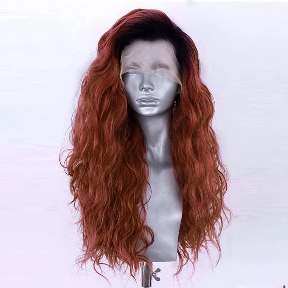 Парик для косплея RONGDUOYI для женщин, бордовые Длинные Синтетичес...