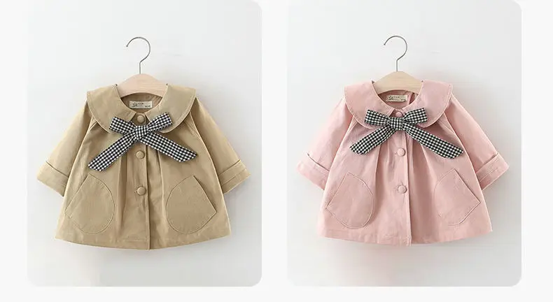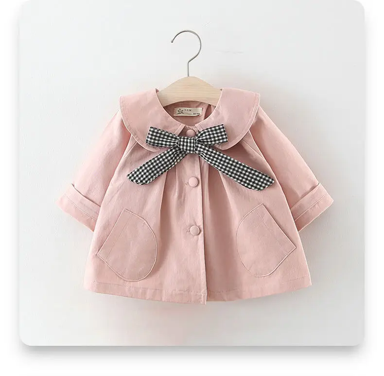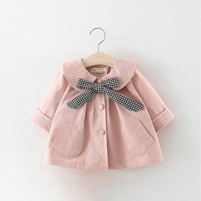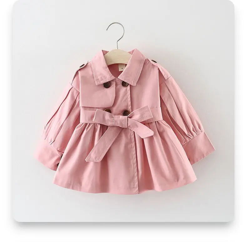 Розовое весенне-осеннее пальто для девочек, хлопковый детский Тренч, милая модная одежда для новорожденных, Одежда для младенцев, уличная одежда для маленьких принцесс