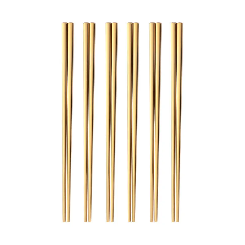 6 пар Нержавеющаясталь металлические палочки дозирующая детская ложка для китайские золотые палками комплект многоразовые Еда палочки экологически безопасные столовые приборы; Прямая поставка