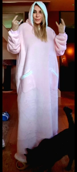 Супер мягкий, теплый, удобный в 1 М50, я 180 см, он падает до лодыжки