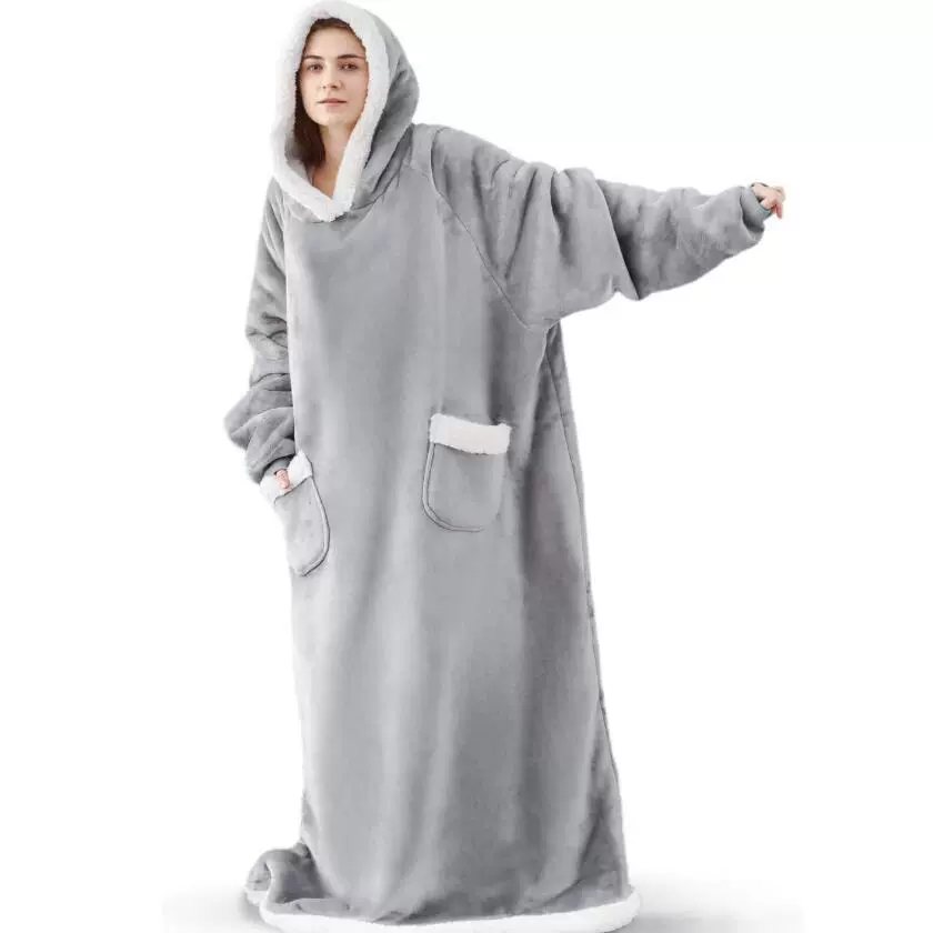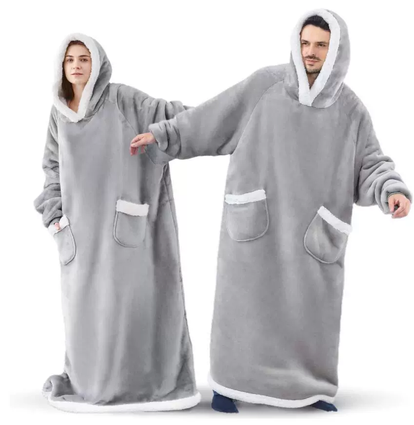 Супердлинное фланелевое одеяло с рукавами, зимние толстовки большого размера, свитшот, женский и мужской пуловер, огромное ТВ одеяло, толстовка, одеяло