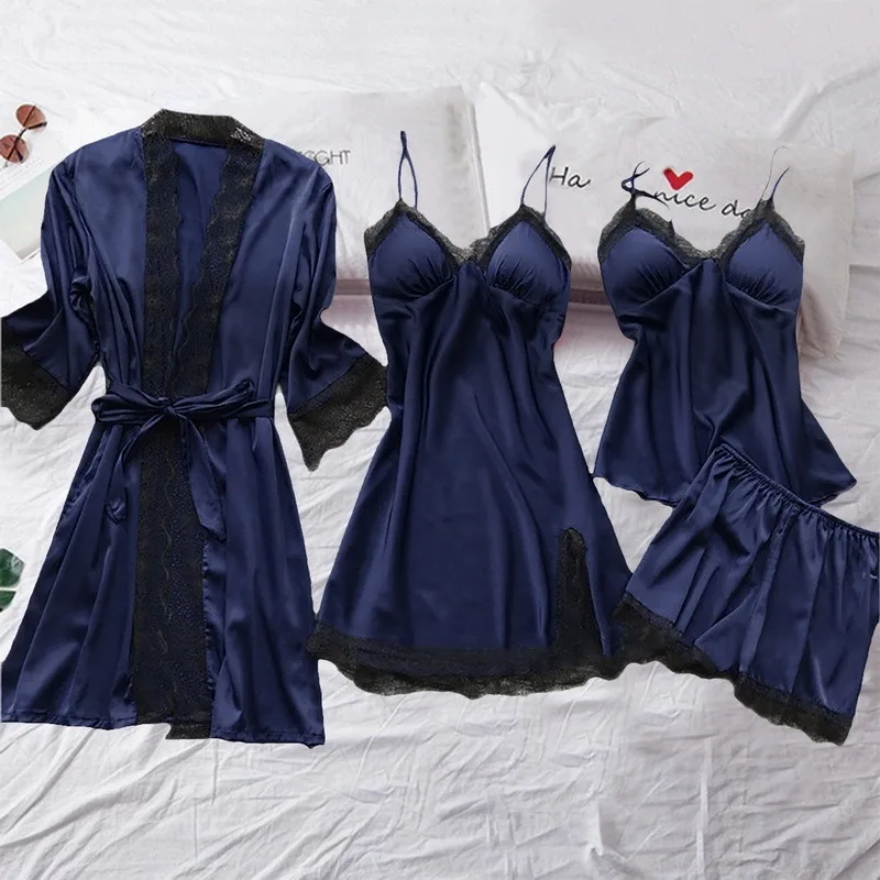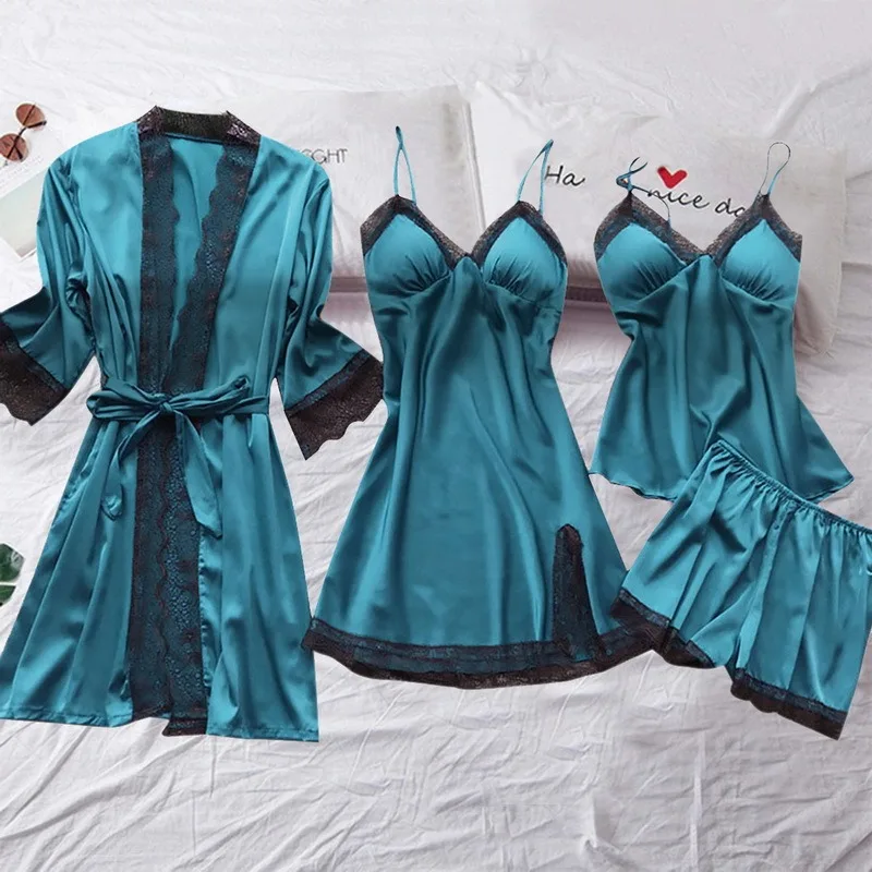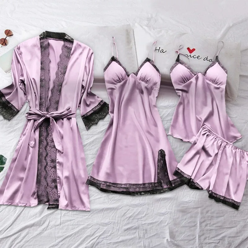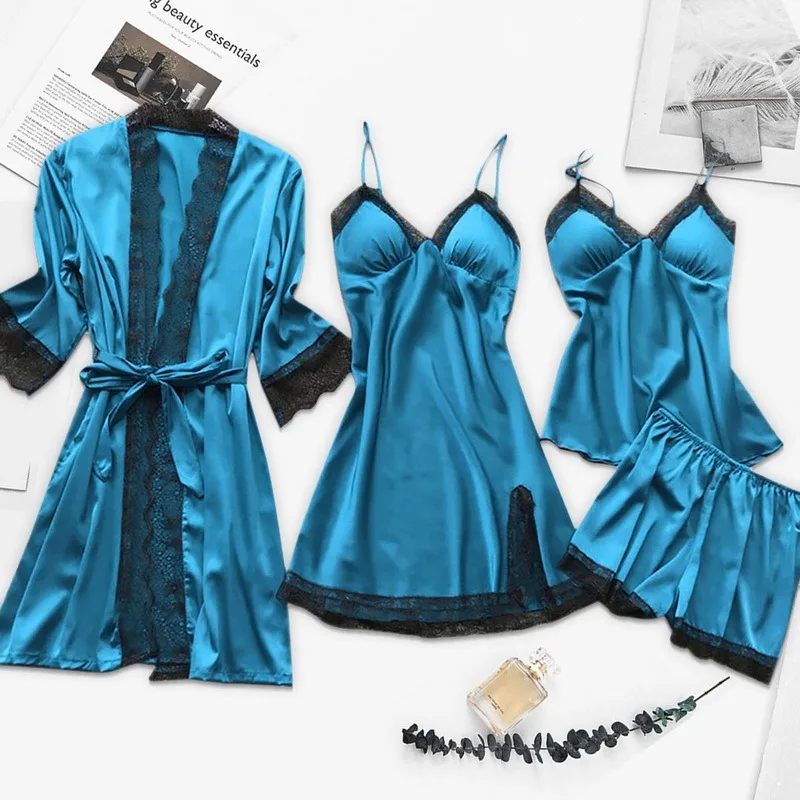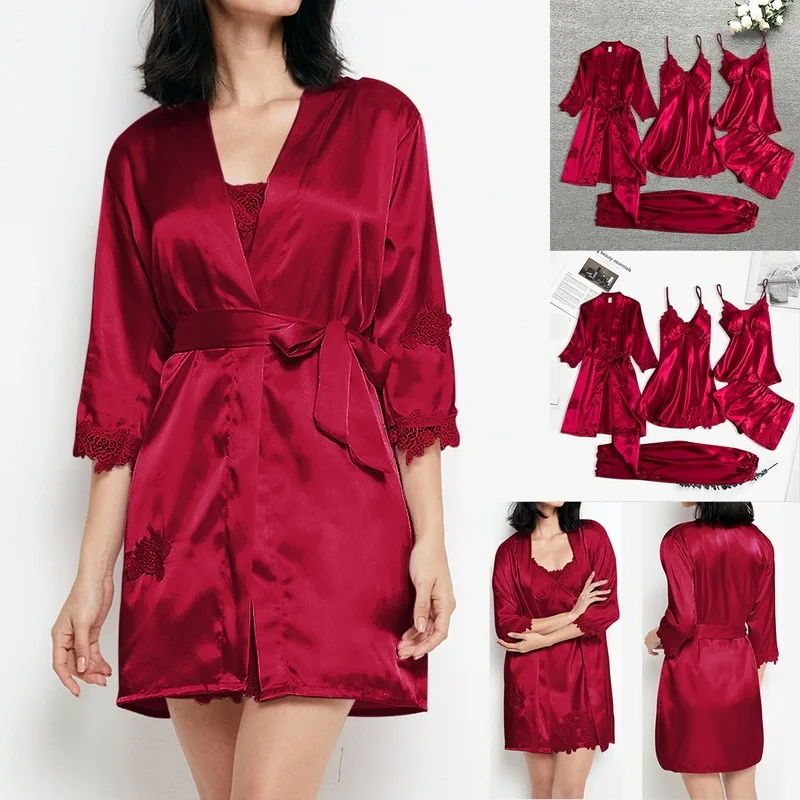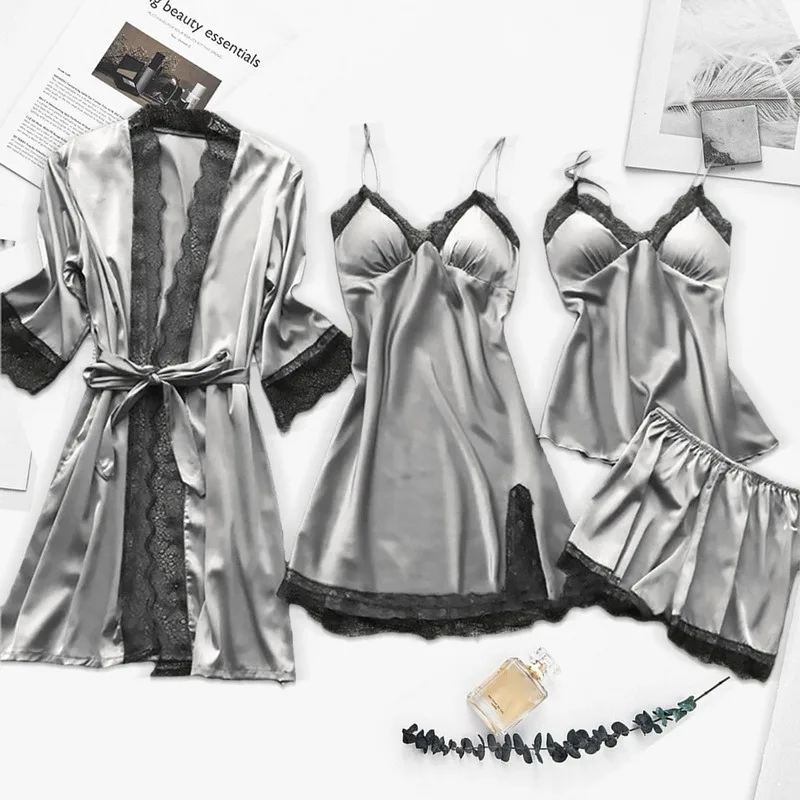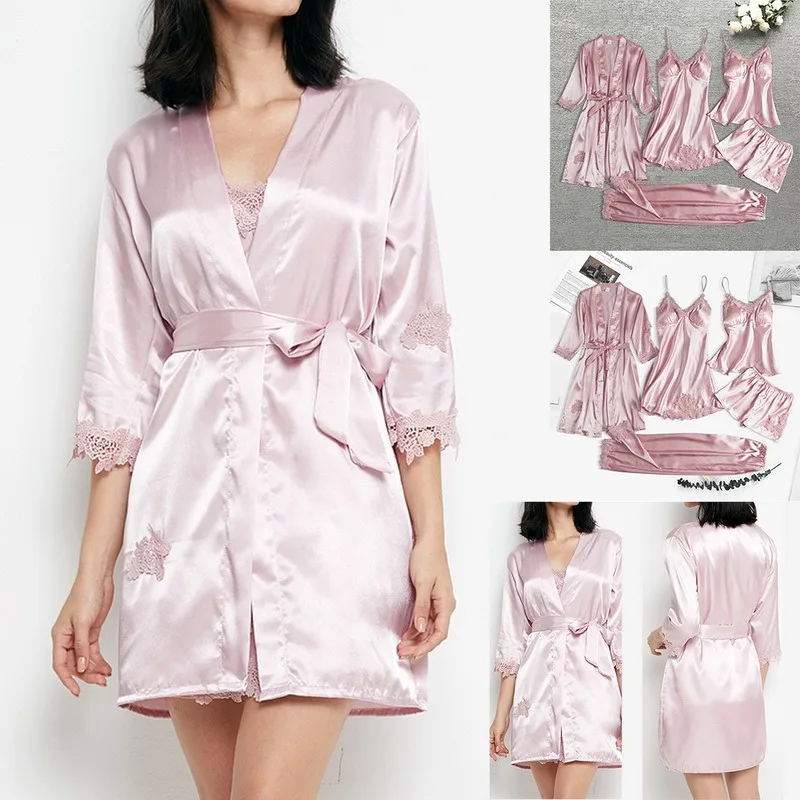 Пижамный комплект Женский атласный, комплект из 542 предметов, кружевная ночная рубашка в стиле пэчворк для невесты, свадьбы, вискоза, домашняя одежда, ночная сорочка и халат