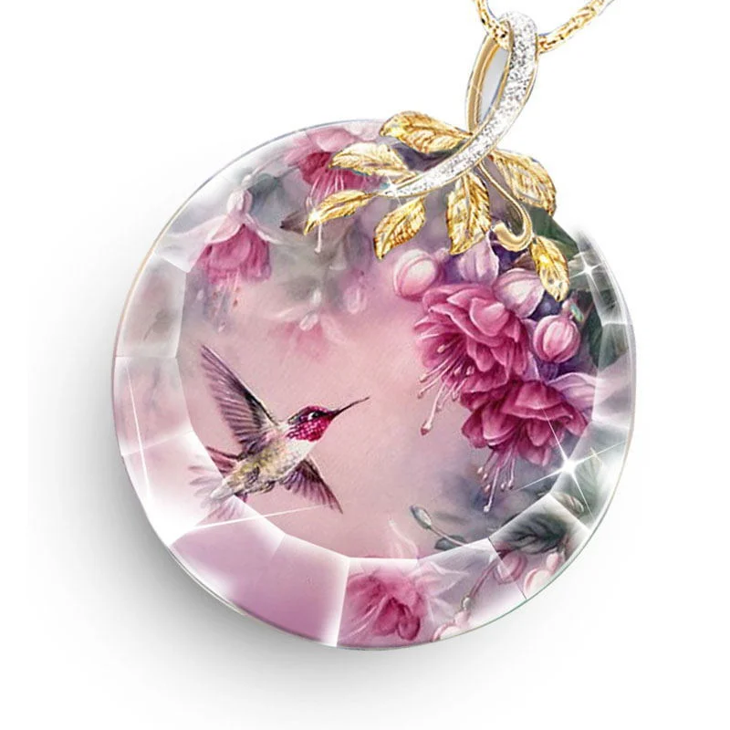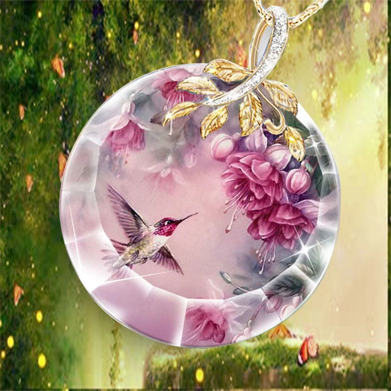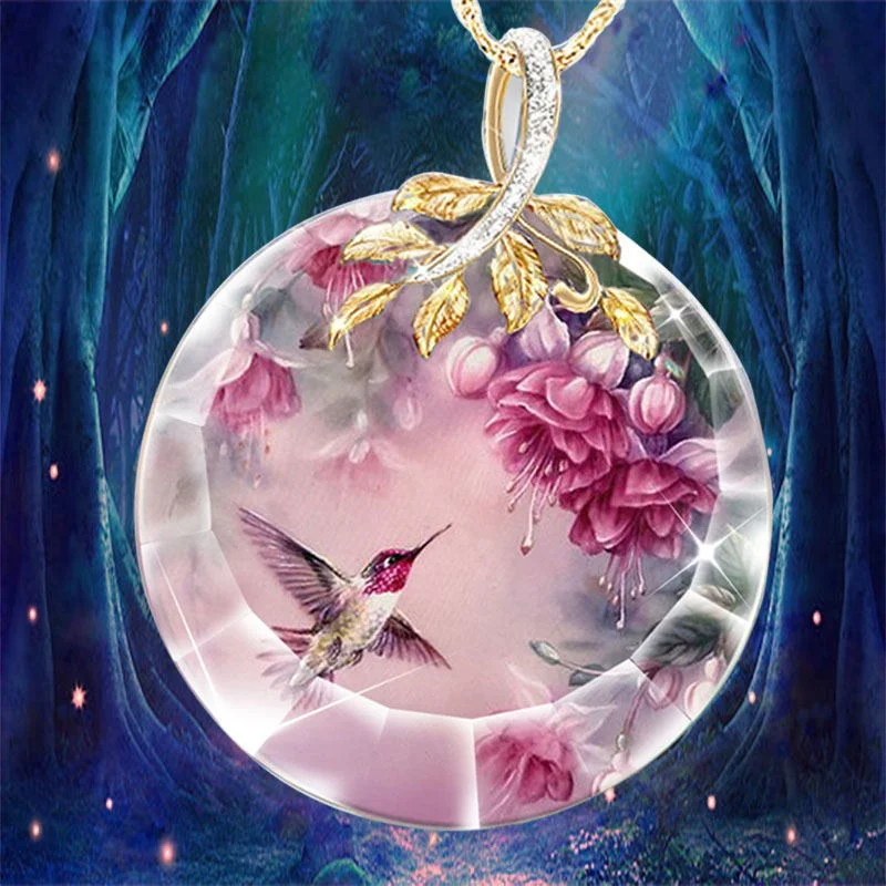 2021 модные ювелирные изделия, круглое ожерелье с кулоном в виде Колибри из прозрачного стекла для женщин, модный подарок для коктейвечерние