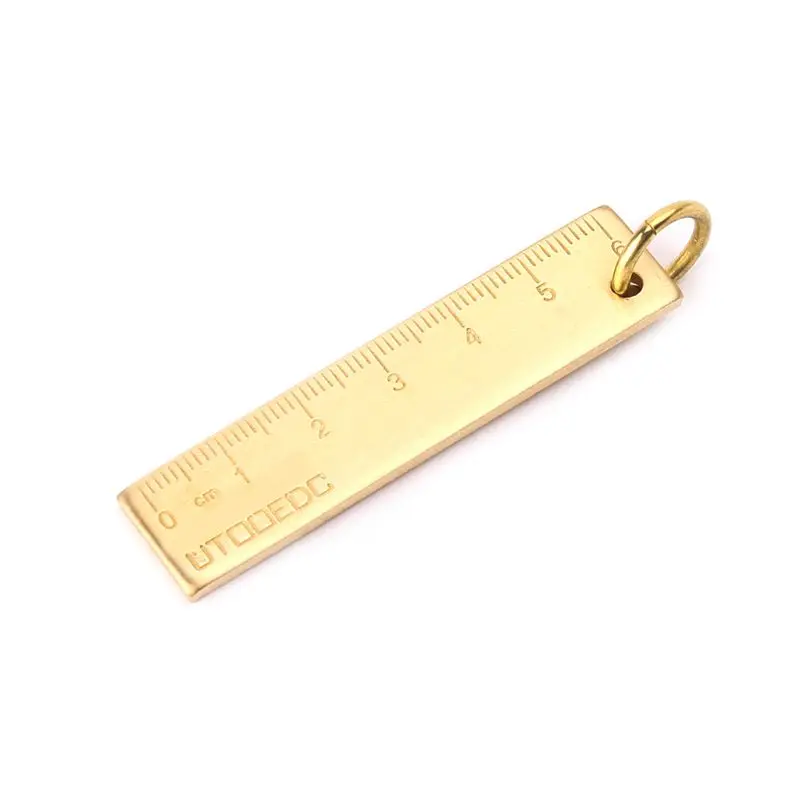 Походная медная линейка, портативный мини-инструмент для повседневного использования, латунная шкала, брелок, подвеска QW