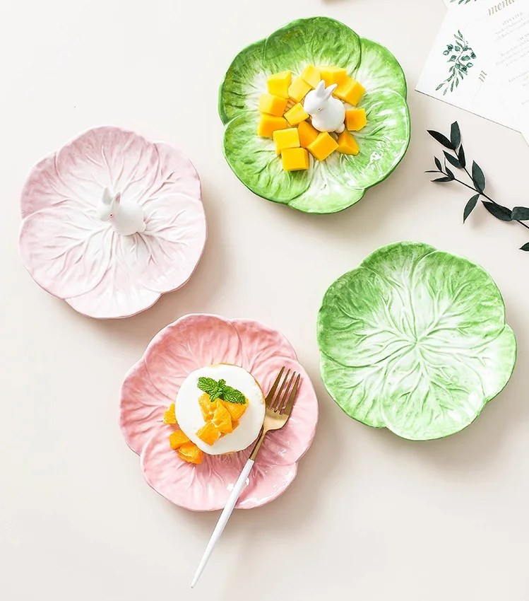 Керамическая тарелка для обеда Ramen, имитация милого мультяшного кролика, ручная роспись, детская посуда, фруктовый салат, набор тарелок для десерта
