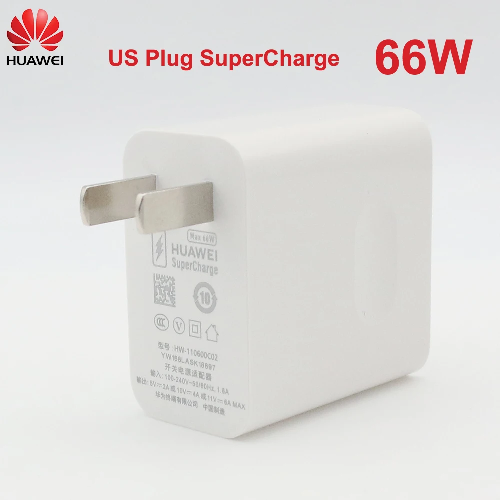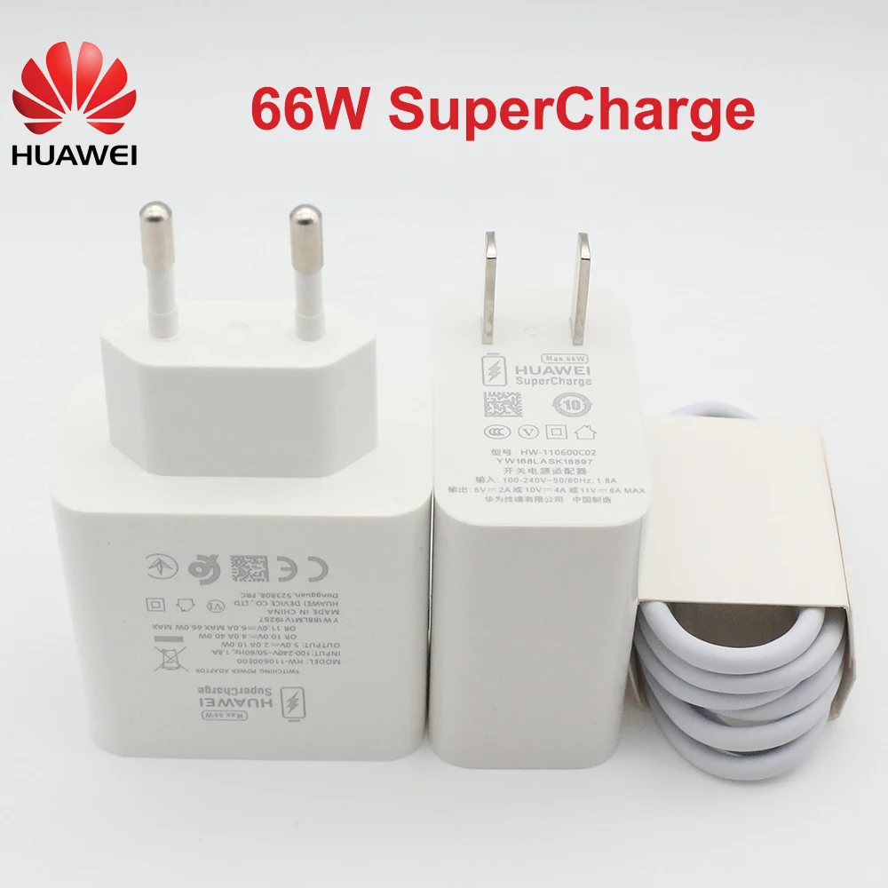 Оригинальный адаптер питания для Huawei Mate 40 Pro, 66 Вт, вилка ЕССША, кабель Usb Type-C для быстрой зарядки 6 А, для Honor Nova 8 se Mate 40 RS P40