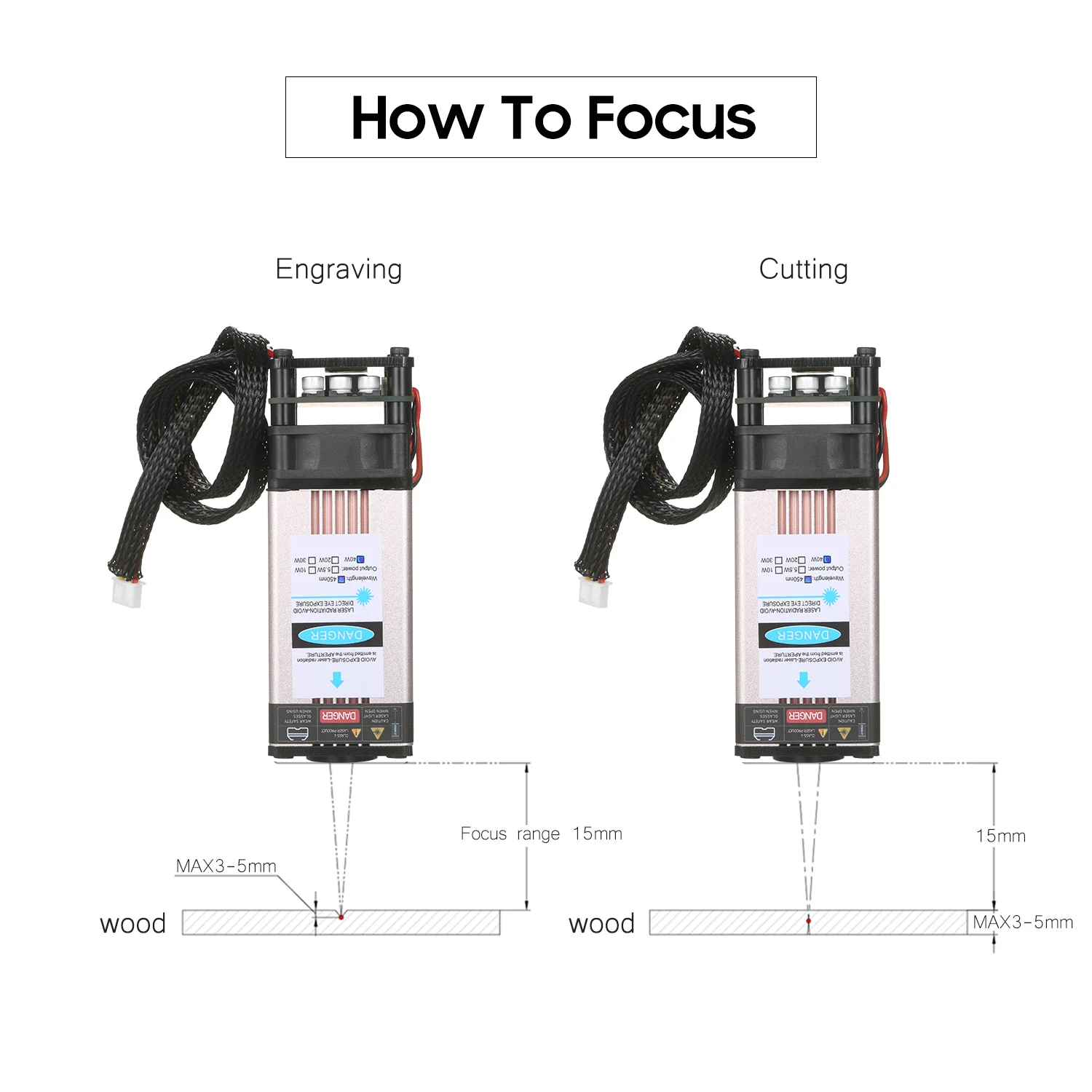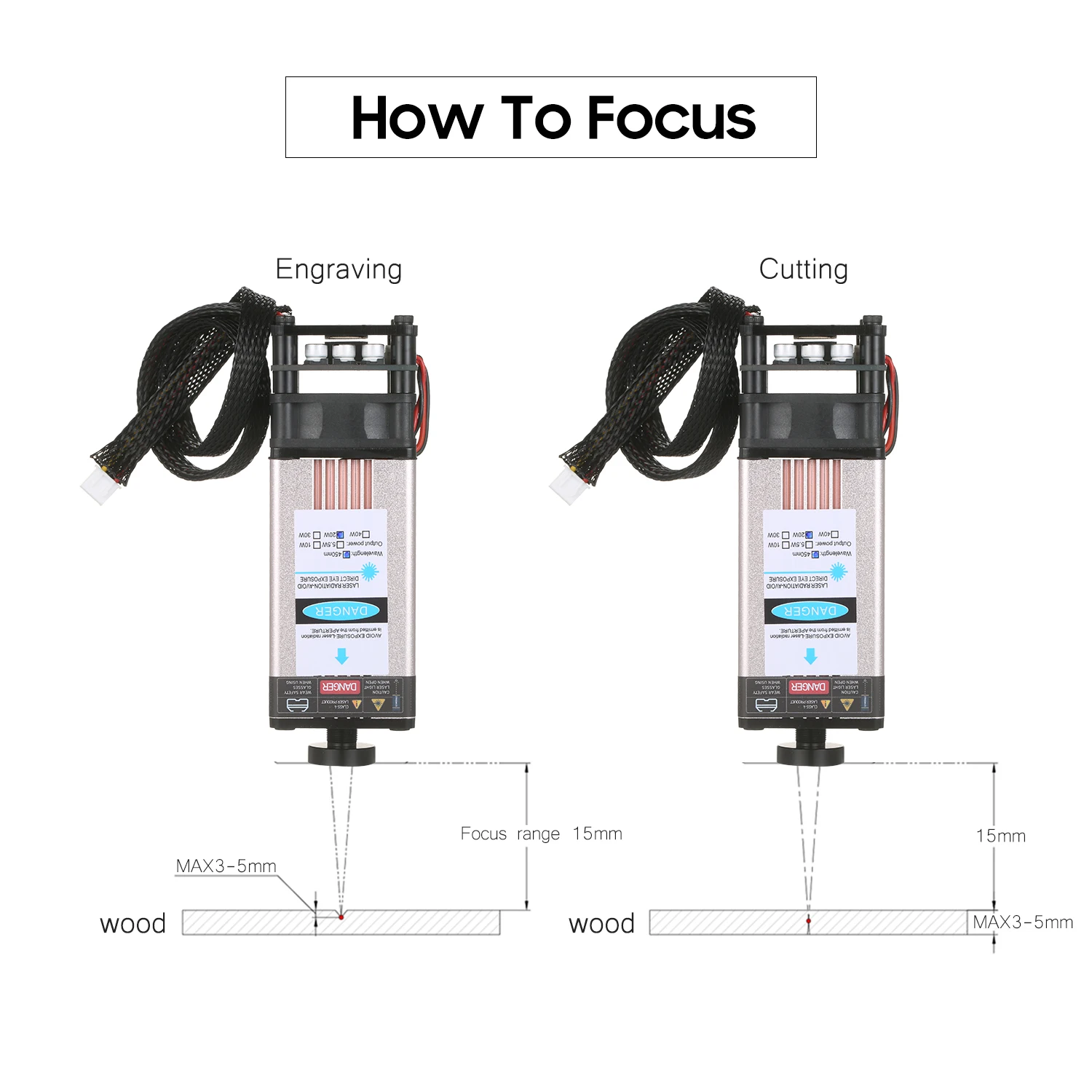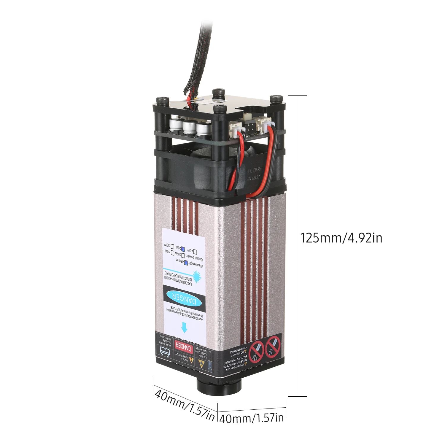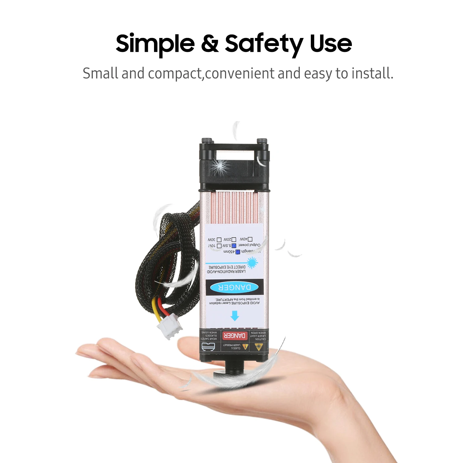 Модернизированный лазерный модуль с более низкой потерей и высокой точностью предназначен как для 3D-принтера, так и для станка с ЧПУ. С длиной волны 450нм, это эффективный инструмент для лазерной гравировки и лазерной резки. Доступны в 5 лазерных мощностях, они могут гравировать и резать различные материалы. Особенности: Модернизированный лазерный модуль-Профессиональная лазерная головка улучшена для более низкой потери и высокой точности без ущерба для скорости и стабильности и может продлить срок службы лазерного модуля. Регулируемый фокус-Регулируемая лазерная головка, легко настраивается, более гибкое использование и обеспечивает гравировку с хорошим качеством и высокой эффективностью. Легко собрать-Маленький и компактный, с длинной линией 35 см, удобный и простой в установке. Хорошо сделанная структура-Изготовлен из качественного алюминиевого сплава, прочный и гладкий, доступен в 5 лазерных мощностях для удовлетворения различных потребностей. Широкое применение-Используется для лазерной резки и лазерной гравировки, ЧПУ, DIY лазер и возможность гравировки черного глинозема, хорошая глубокая гравировка. Характеристики:Материал: алюминиевый сплав + пластикМощность лазера: 5500 МВт/10 Вт/20 Вт/30 Вт/40 Вт (опционально)Светильник Цвет: синий с защитой от УФДлина волны: 450нмФорма Facula: пунктиформа, регулируемый фокус (30 Вт и 40 Вт нельзя регулировать фокус)Входное напряжение: 12 ВДлина линии: 35 см/13,77 дюймаТовар Размеры: 12,5*4*4 см/4,92*1,57 * 1.57inВес изделия: 224 г/7,9 унцийВес посылка: 258 г/9,1 унцийПосылка Размеры: 16*6*6 см/6,29*2,36 * 2.36in Упаковочный лист:1 * лазерный модуль