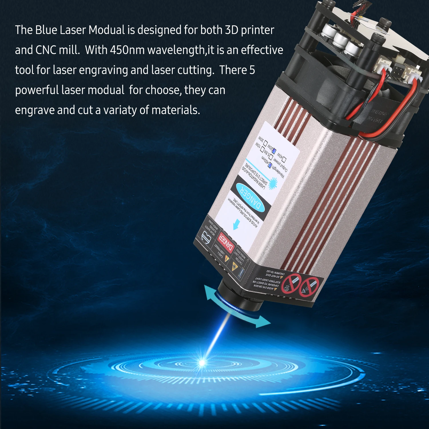 Сменный лазерный модуль для лазерной гравировальной машины, лазерная головка 450 нм, модуль гравировки с ЧПУ, лазерный станок, инструмент для резки дерева