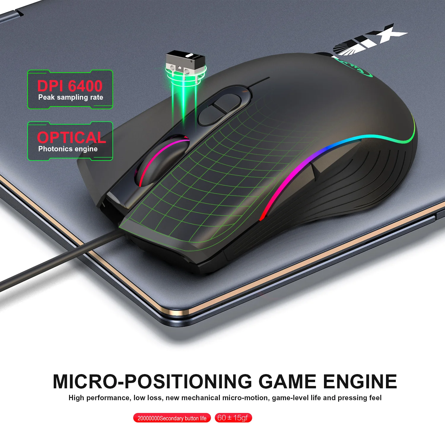 2021 HXSJ A867 6400 Точек на дюйм игровой Мышь 7 кнопок Проводная Оптическая USB Настольный мышей RGB компьютерная мышь с подсветкой для компьютера, ноутбука, геймеры