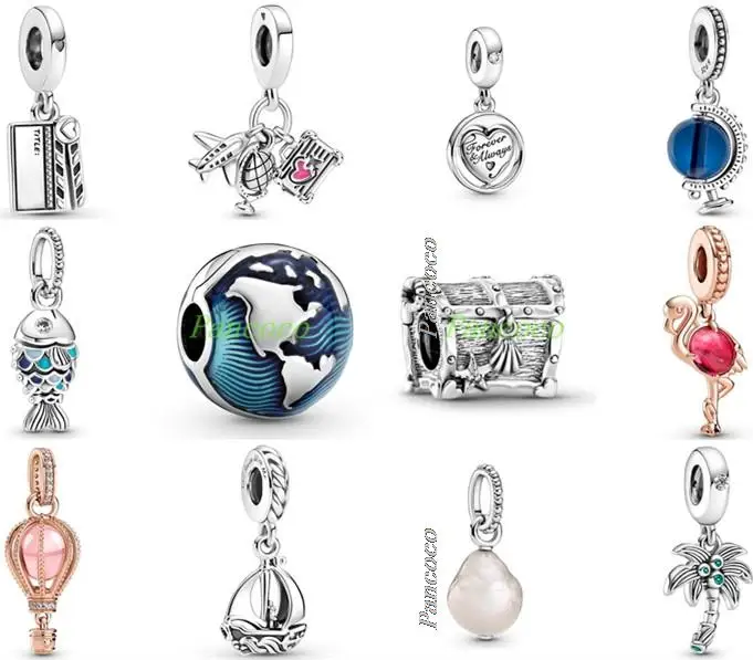 Подвеска из серебра 925 пробы в виде розового фламинго, яблока, рыбы