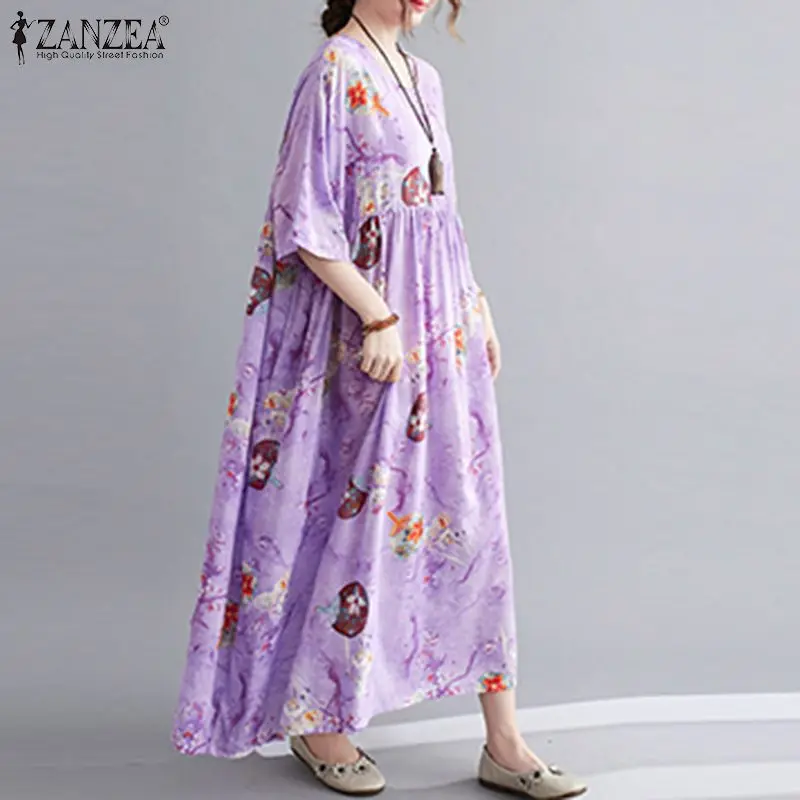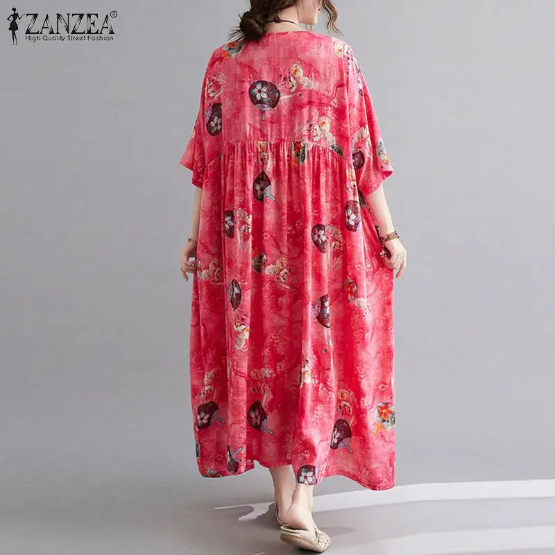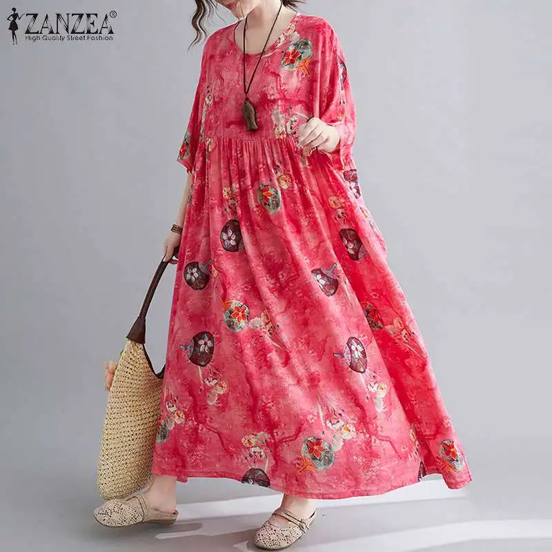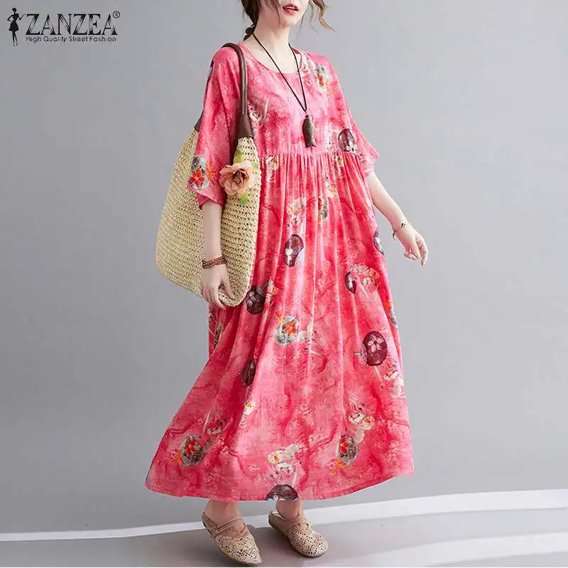 Сарафан ZANZEA женский с цветочным принтом, повседневный плиссированный сарафан средней длины, лето 2022