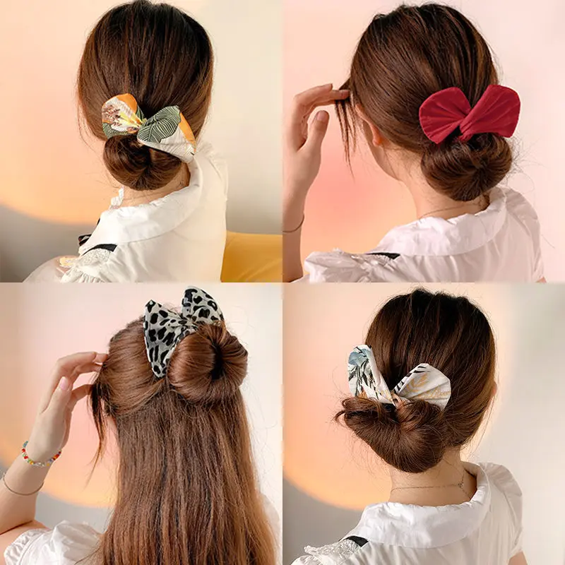 Резинки для волос Deft в пучок, аксессуары для волос для девушек и женщин, гибкие резинки для волос сделай сам с бантом, пончиком и принтом, бигуди, инструмент для укладки волос