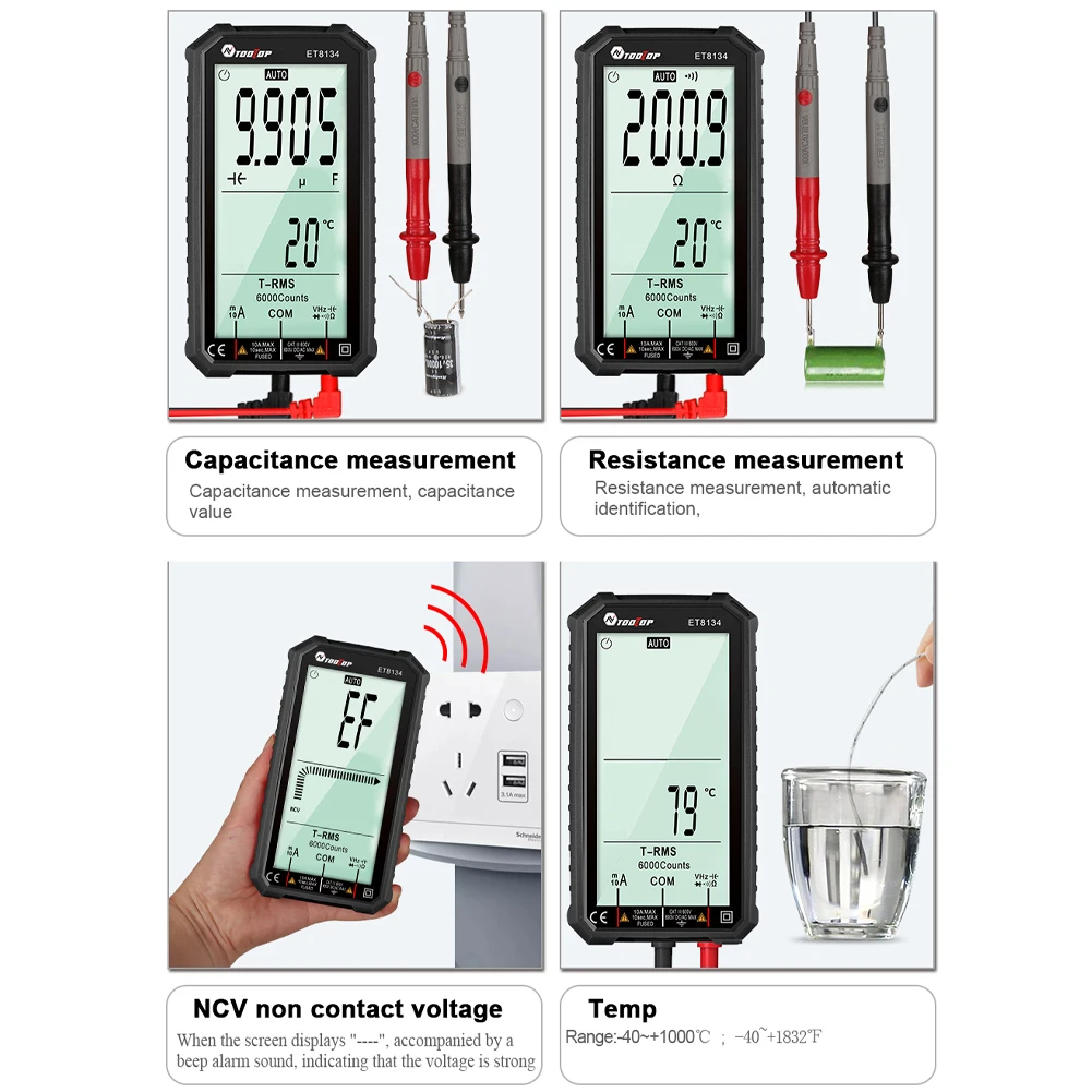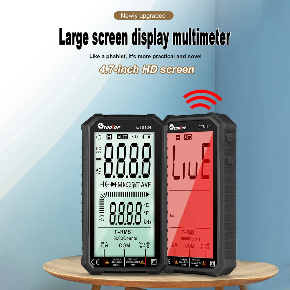Мультиметр TOOLTOP ET8134 с ЖК-экраном 4,7 дюйма, Функция измерения силы тока, напряжения переменного тока, емкости, сопротивления, подсветки