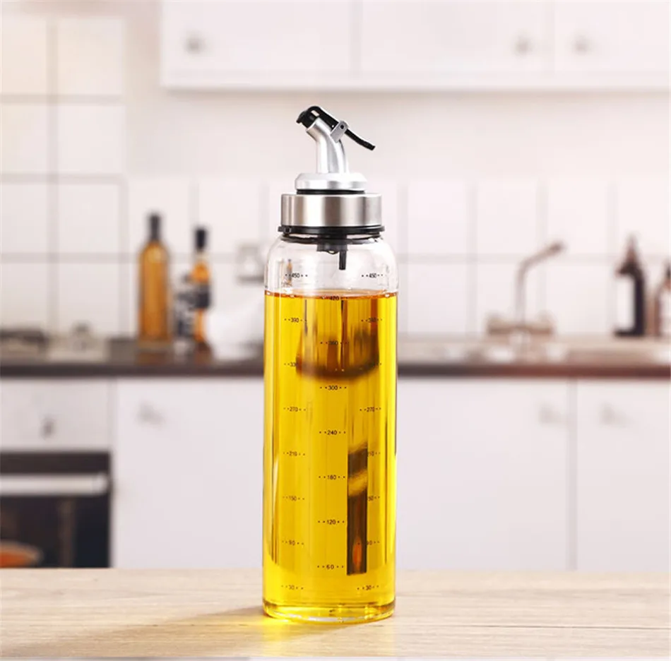 Бутылка для масла из боросиликатного стекла, Герметичная Бутылка для масла со шкалой, для измерения количества соуса, уксуса, кухонные принадлежности
