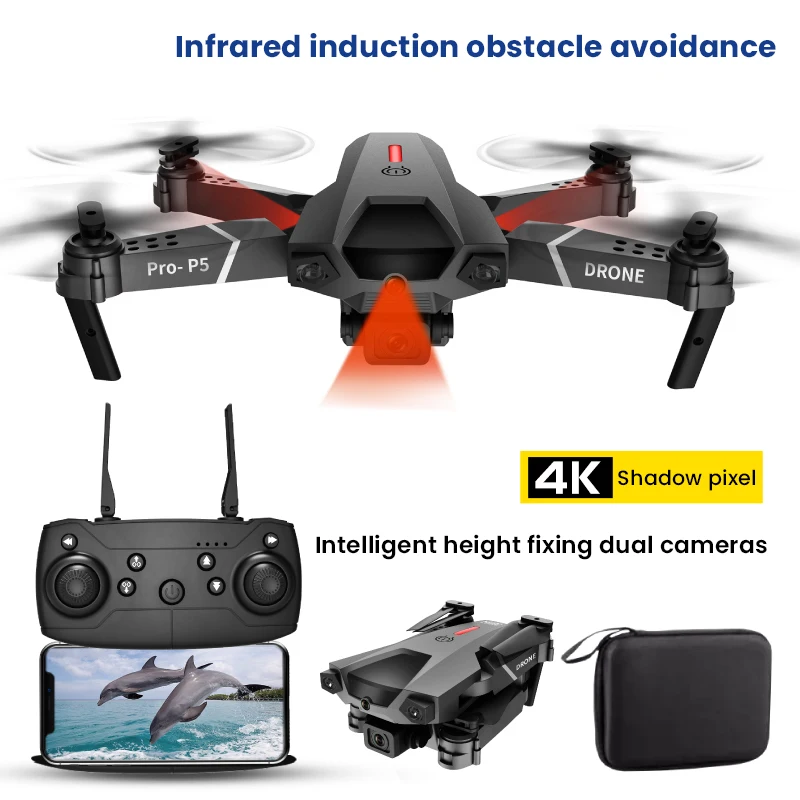 Дрон P5 складной, камера 4K, с двумя объективами, с инфракрасным излучением препятствий, для аэрофотосъемки