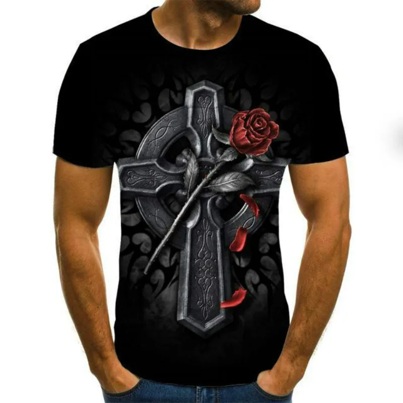 Мужская футболка с готическим 3D-принтом, Летняя Повседневная рубаш...