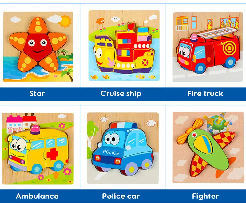 Мультяшный Детский 3D Деревянный пазл головоломка доска Монтессори ...