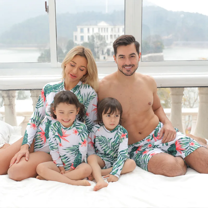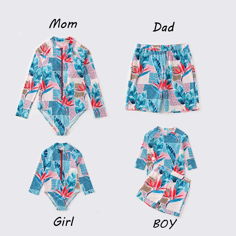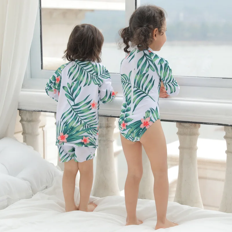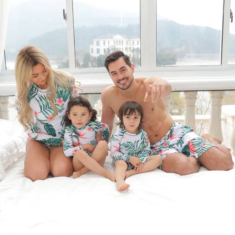 Тропические листья, семейный дневной купальник с длинным рукавом дл...