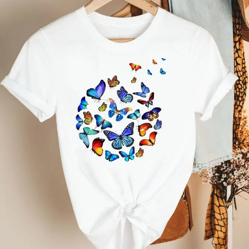 Футболка женская с принтом бабочек и графическим принтом, милая Пов...