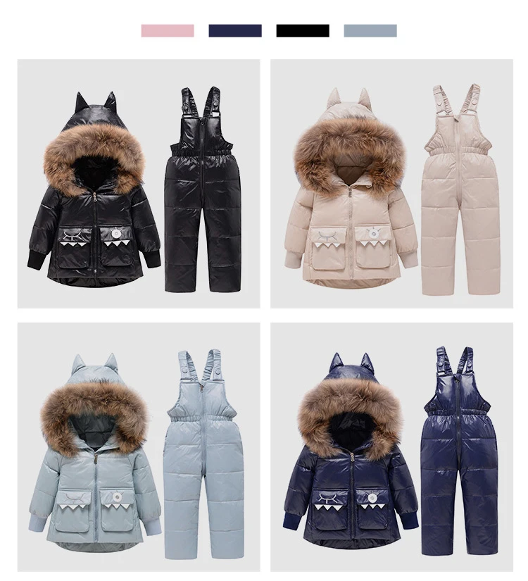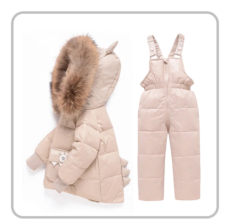 Детский пуховой костюм, зимний теплый лыжный костюм с динозавром, для мальчиков и девочек, штаны, парка, 2021, От 1 до 5 лет