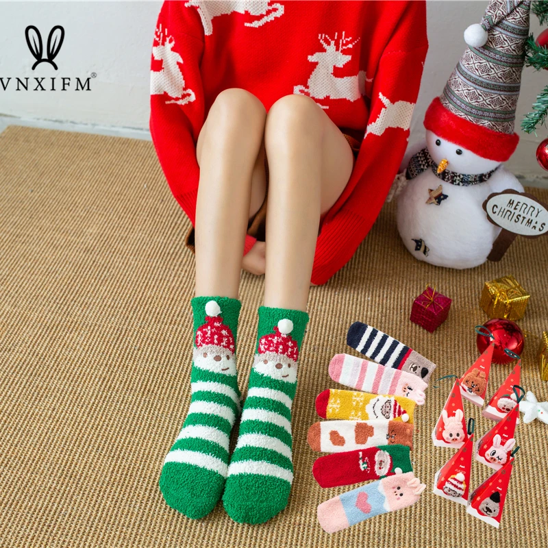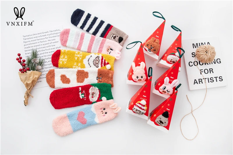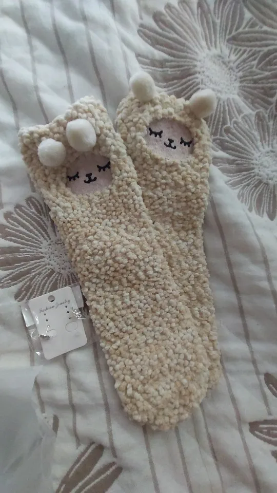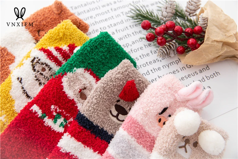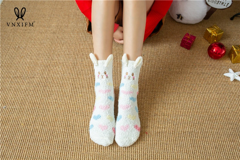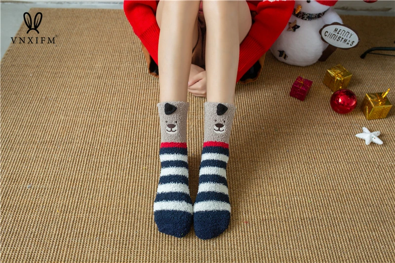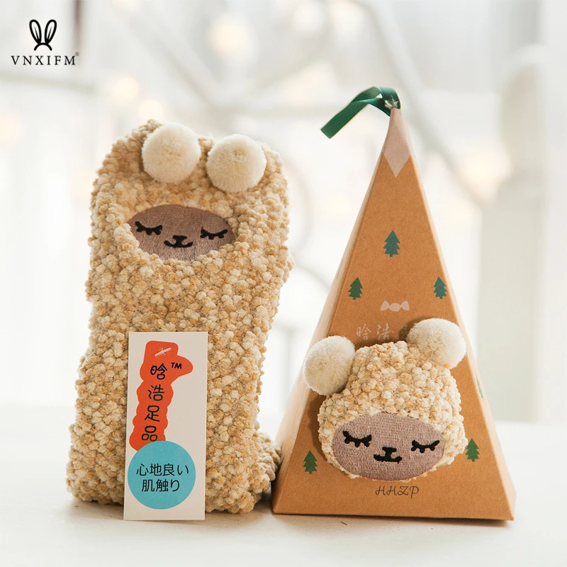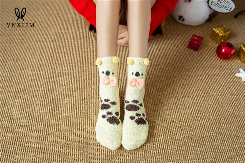 Новые Женские уютные однотонные носки, Смешные Носки с рисунком енота, совы, пингвина, овцы, зимние теплые флисовые Носки для сна