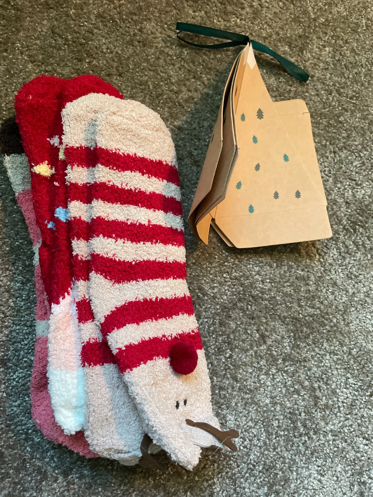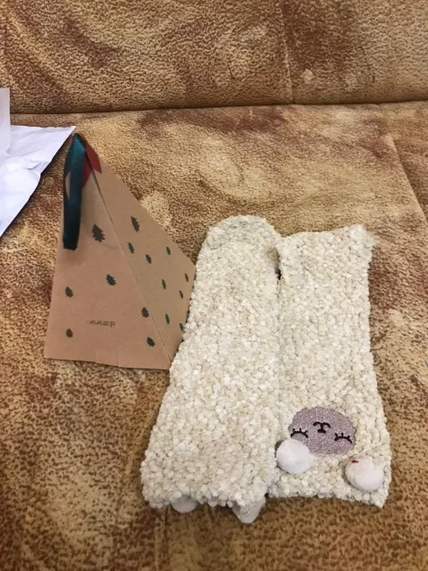 носки нормальные, яркие, вышивка хорошая. качество - не махрушка, но мягкое, надолго не хватит, по по опыту скажу, что у меня такие носки, даже белые, отлично отстирываются. А вот коробочка пришла вся в заломах и измятая, я прямо расстроилась, ведь весь смысл был подарить в коробке. Зато сережки в подарок положили, зайчики-блестяшки, мне они понравились не меньше, чем носки. Снимаю звезду за коробку, а так доставка быстрая, прислали то, что надо, товар соответствует фото.