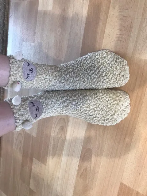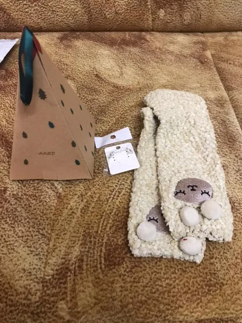 Носочки очень миленькие. Выполнены аккуратно, мягкие, мордочки прикольные. Упакованы были в зип пакет. Брала 2 пары, все было аккуратно сложено и упаковано. Домики собираются легко, носочки в домике смотрятся сказочно. В подарок продавец положил серьги гвоздики с зайками, очень симпатичные и аккуратные, буду носить. Продавца и товар рекомендую.