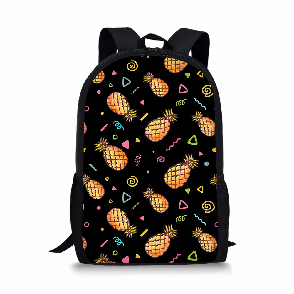Рюкзак с принтом ананасов для мальчиков и девочек, школьные ранцы для учеников и книг, черные школьные портфели с аниме для колледжа и ноутбука для женщин и мужчин