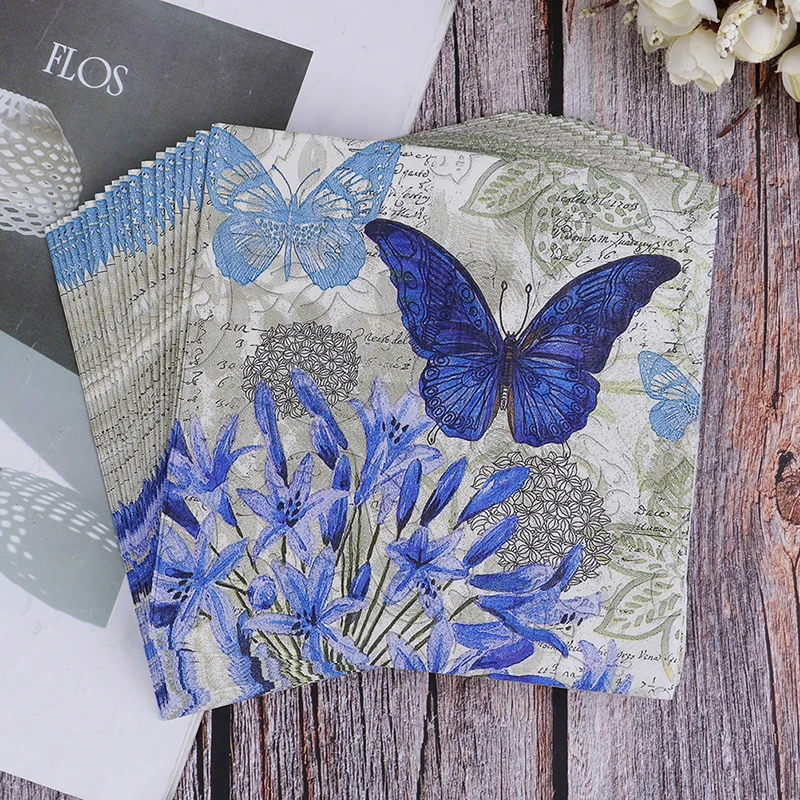 20 шт.упак. салфетки рождественный декоративный резок ткани фиолетового цвета с бабочками и цветами на свадьбу, День Рождения Декоративные биоразлагаемые материалы