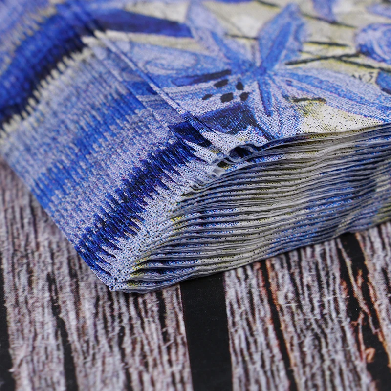 20 винтажная салфетка, бумажная ткань, фиолетовый цветок, синий пла...