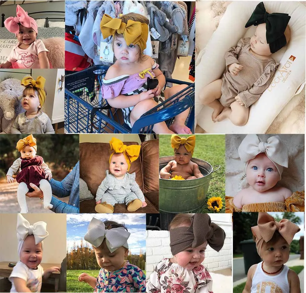 Повязка на голову детская, 7 дюймов, однотонная, с большим бантом, ...