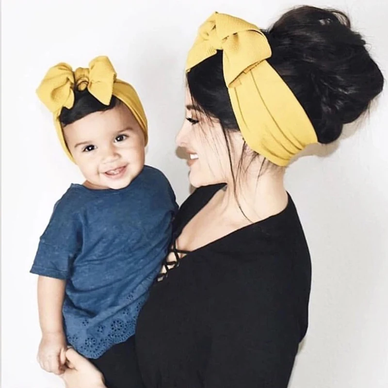 2 шт.компл. для мамы и детей, повязка на голову, повязка для малышей милые Комлект нижнего белья хорошего качества, Цвет нейлоновая эластичная одежда для родителей и ребенка с повязкой на голову для маленьких девочек аксессуары для волос в виде тюрбана