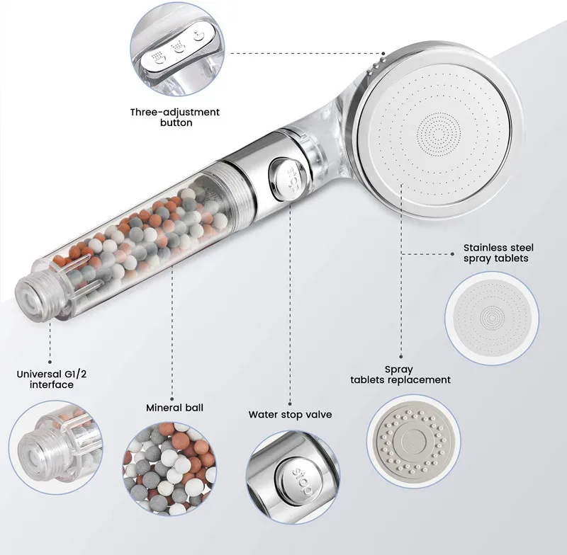 Ионная душевая лейка для ванной комнаты, водосберегающая насадка для душа с фильтром для жесткой водной ванны, регулируемая Распылительная насадка StoneStream