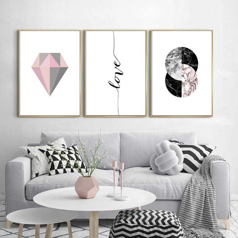 SURE LIFE современные абстрактные розовые серые геометрические алмазные картины на холсте Любовь Настенные картины плакаты принты Декор для гостиной