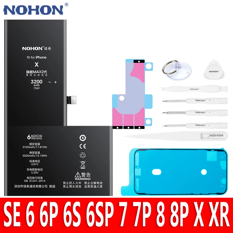Nohon МодельBattery For iPhone X XR 8 Plus 7 Plus 6S Plus 6 Plus SE 2020 iPhone8 iPhoneX